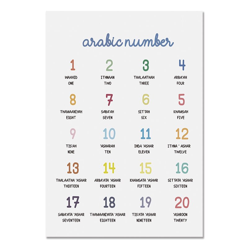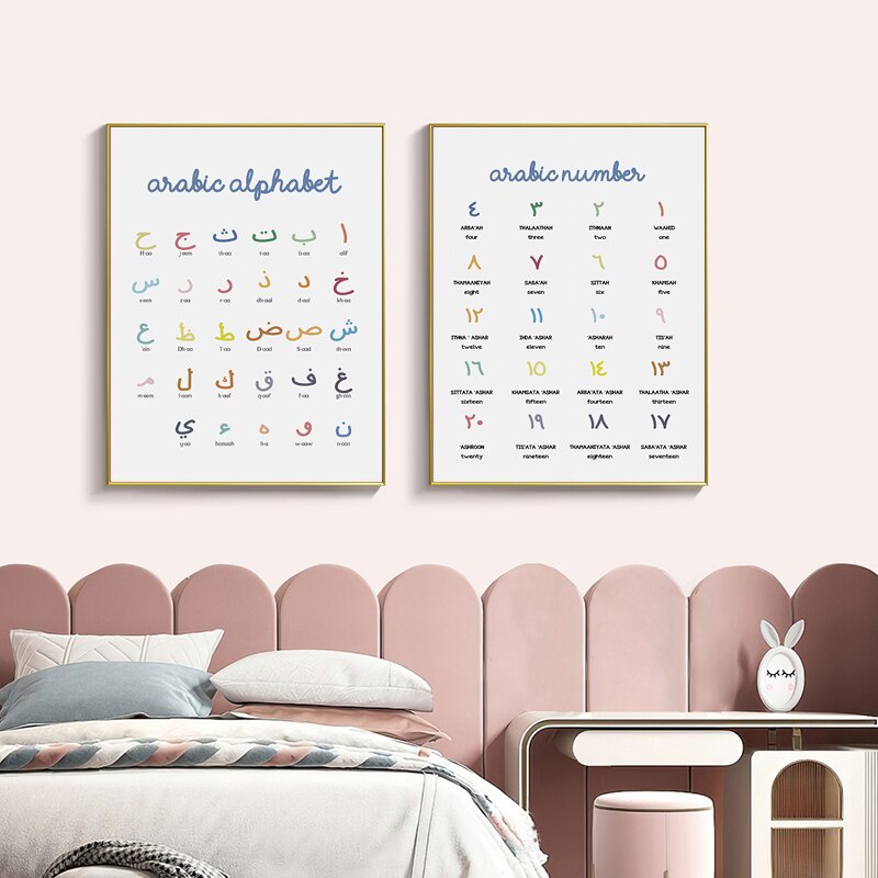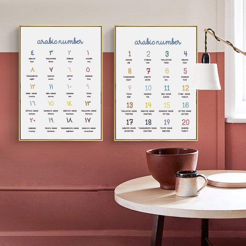 Nursery Arabic Numerals Alphabet Canvas Painting Modern Numbers Muslim Wall Art Poster Prints Pictures for Kids Room Home Decor Kids Room Decor Islamic Wall Art Wall Decoration