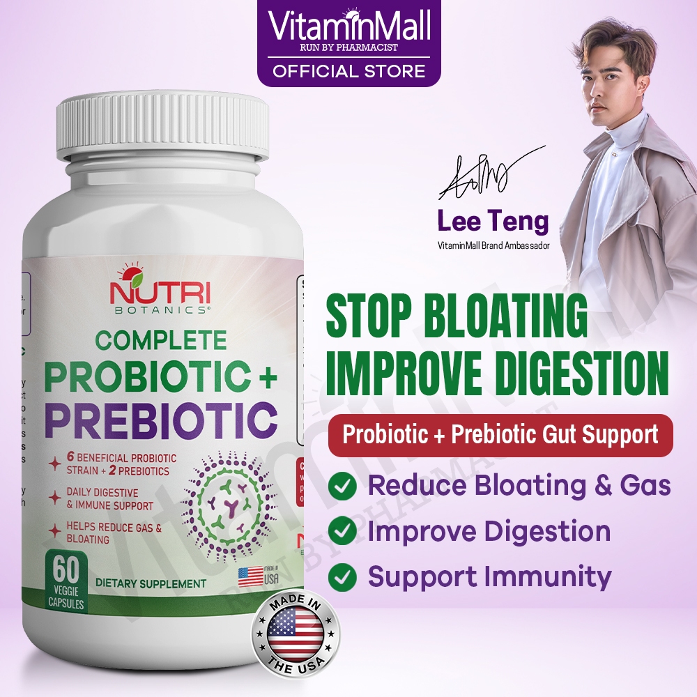 Nutri Botanics Prebiotic and Probiotic Supplement - 6 Strain Probiotics - Digestive Gut Health 60's