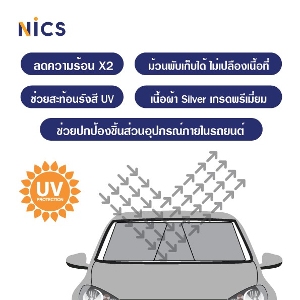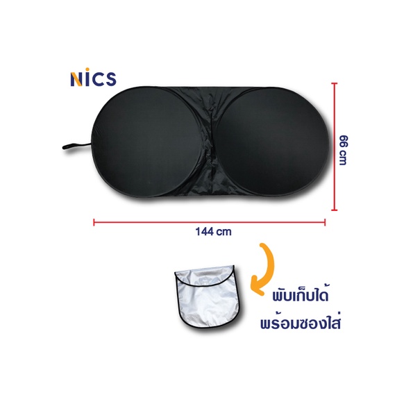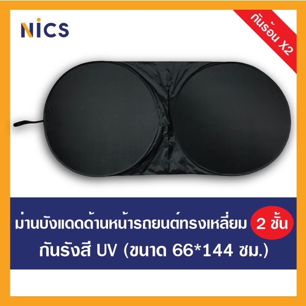 O2 Nics 2-Layer Uv Protection Sunshade For Car Front Round Shape Size 66x144 cm.