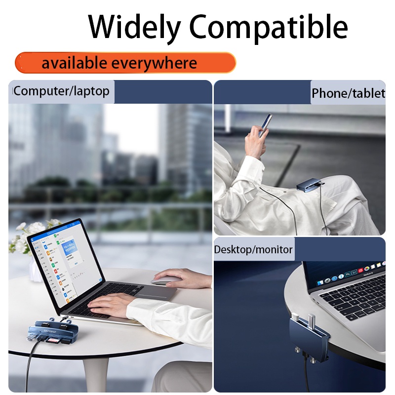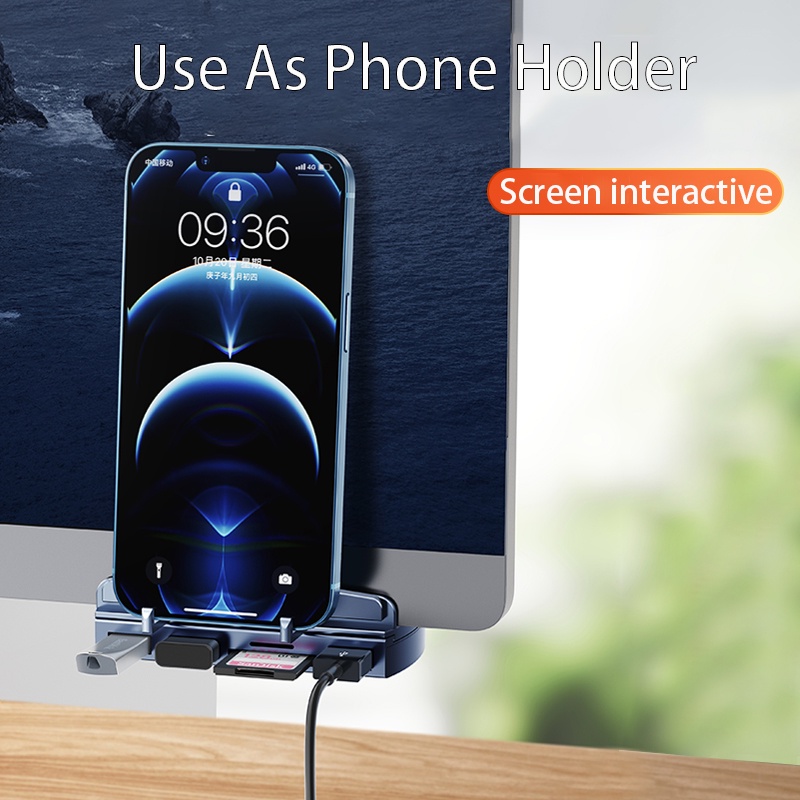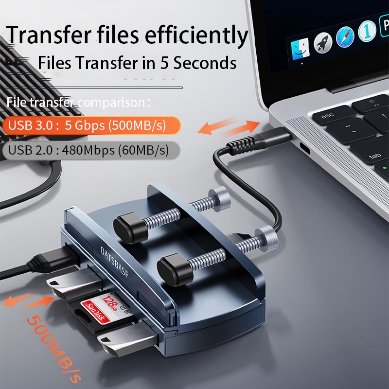 OATSBASF Magnetic 5 in 1 Type-C USB 3.0 TF / SD Reader Adapter Hub Docking Station with Desktop Monitor Clamp