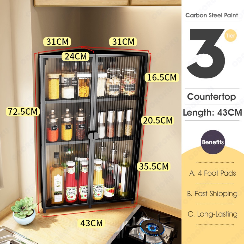 ODOROKU 2/3 Tier Kitchen Spice Rack Standing Rack Triangle Bathroom Countertop Storage Shelf Kitchen