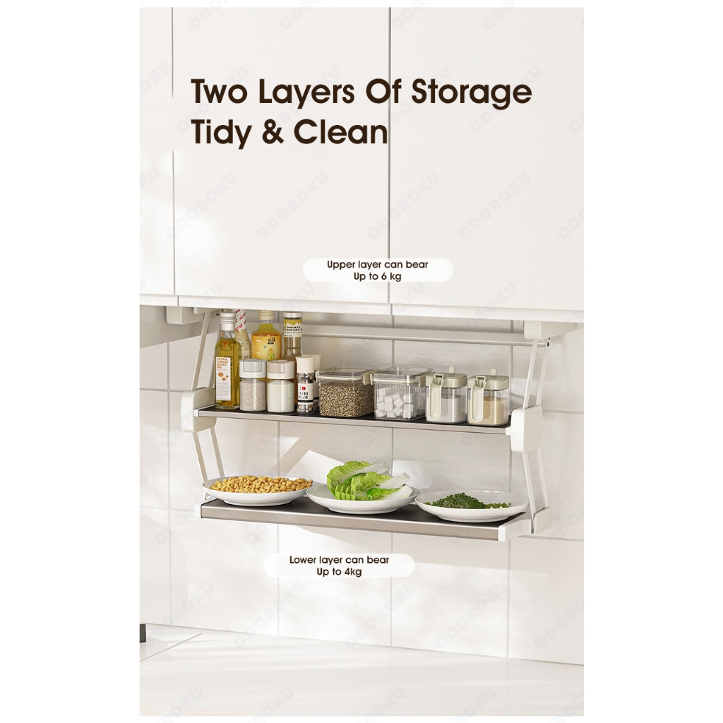 ODOROKU 2 Tier Aluminum Pull Down Shelf Drop Down Cabinet Organizer Kitchen Cabinet Foldable Pull Down Shelf