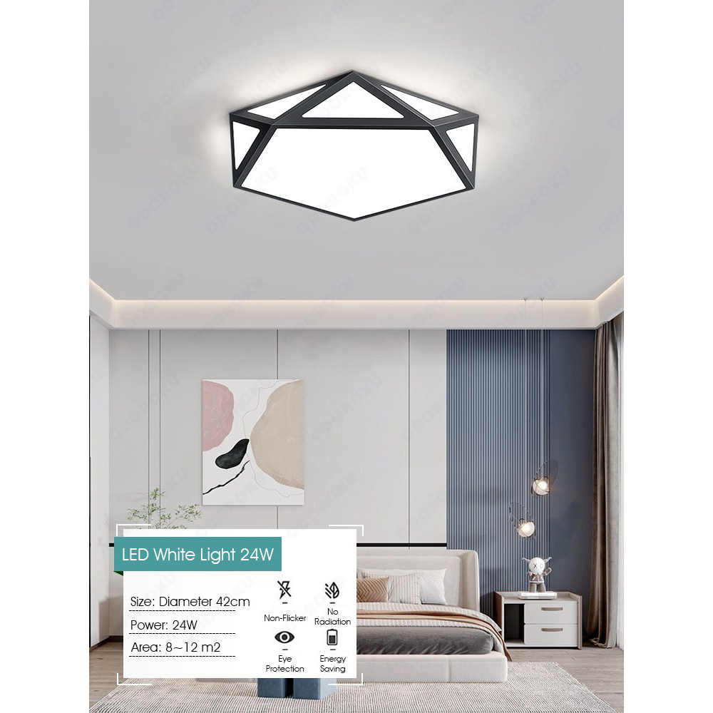ODOROKU Hexagon Modern LED Ceiling Light Flush Mount Ceiling Light Fixture Hexagon Lighting Lamp with Acrylic Lampshade