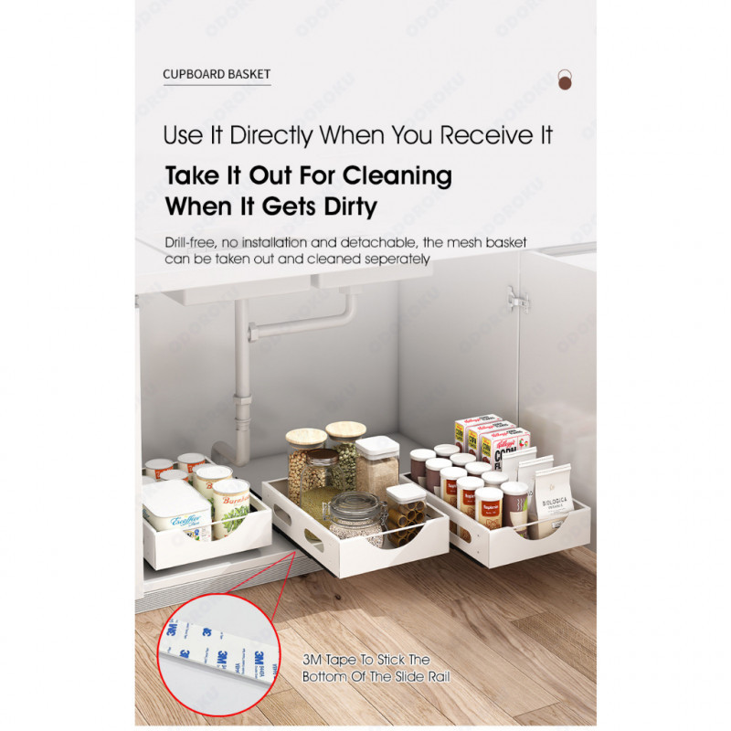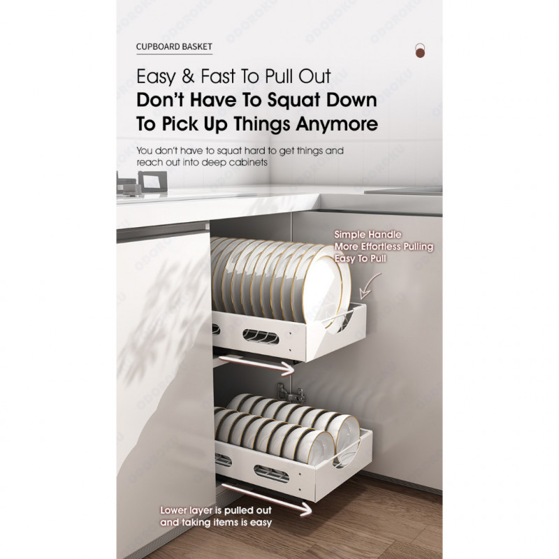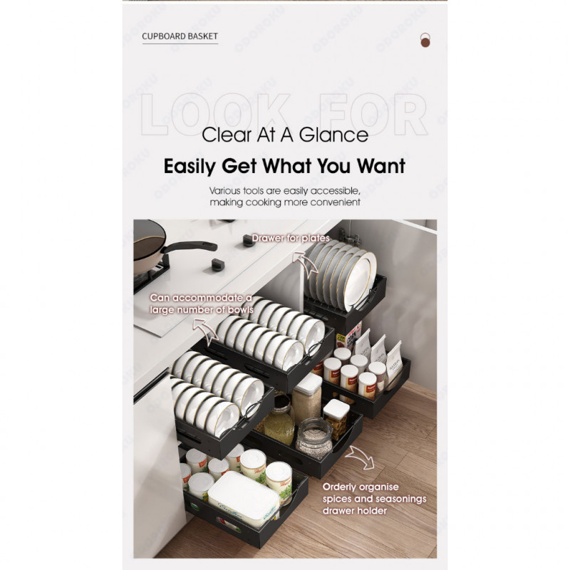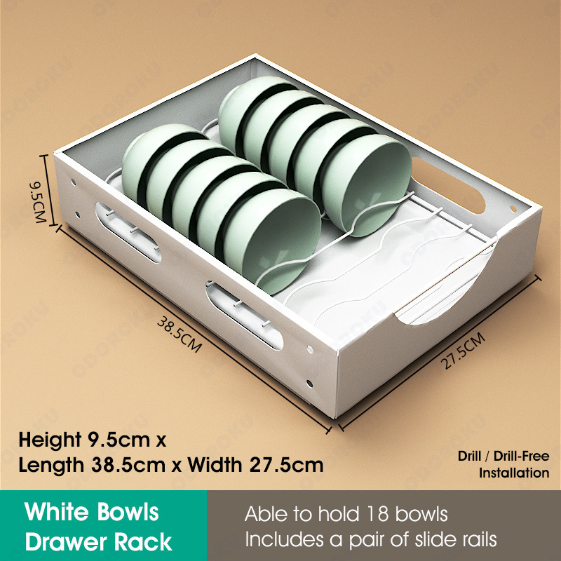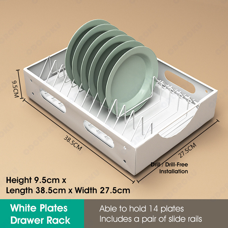 ODOROKU Sliding Cabinet Drawer Rack For Dishes Plates Bowl Organizer Kitchen Drawers Multi-Purpose U