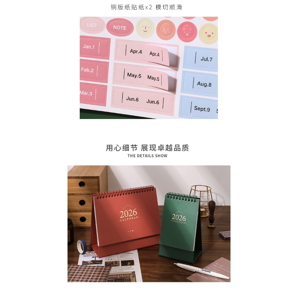 OHAYA | 2026 Calendar Gilding Desk Calendar Desk Calendar Desktop Memo Desktop Notepad Calendar Monthly Calendar Memo Self