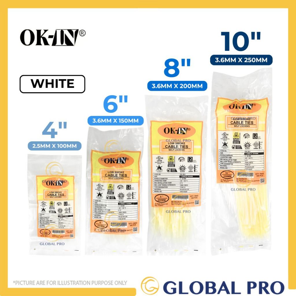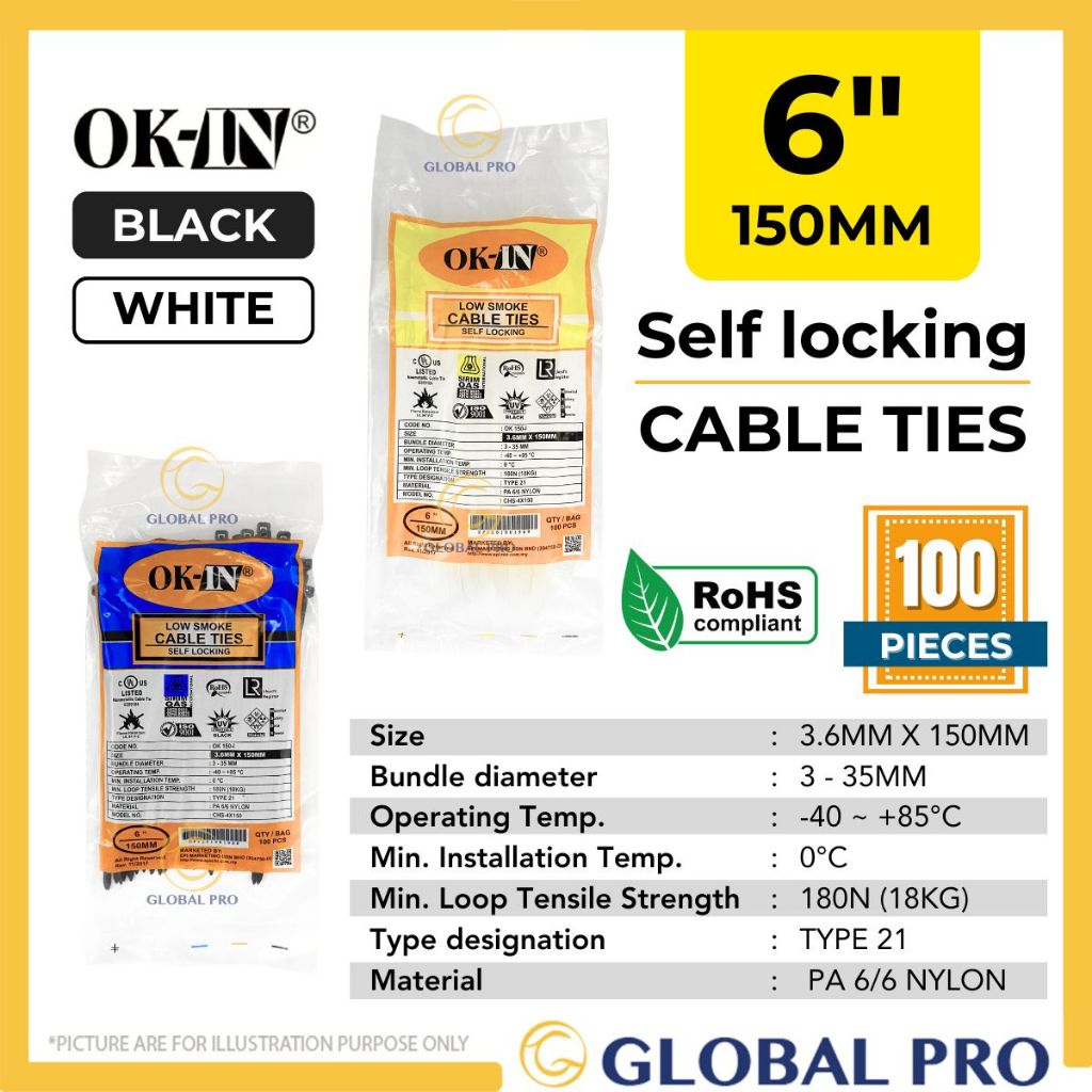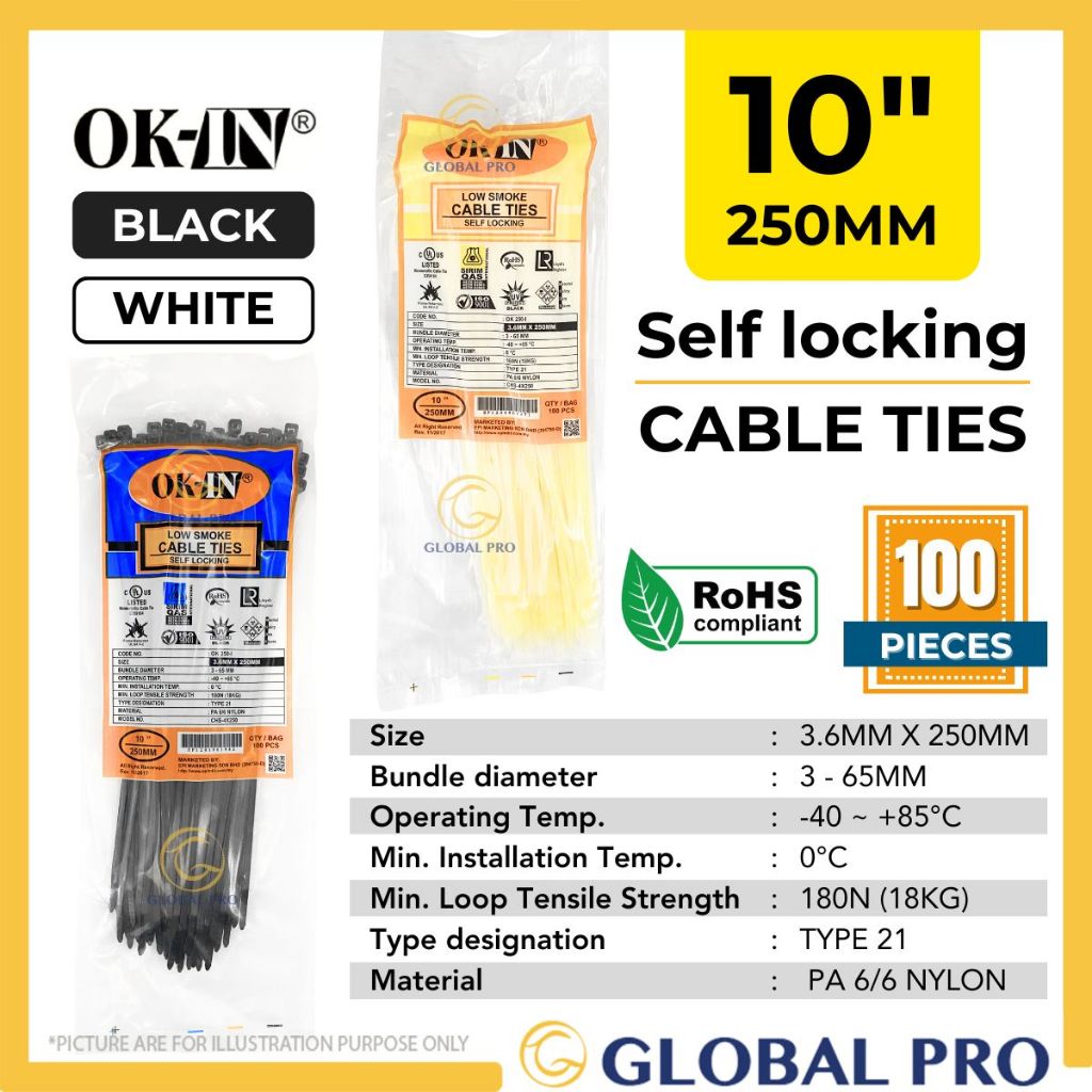 OK-IN 100PCS Multipurpose Nylon Cable Tie Cable Management Cable Tie Zip Tie Wayar Cable Tight Wire Organizer Kabel