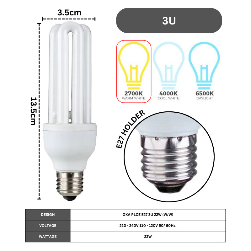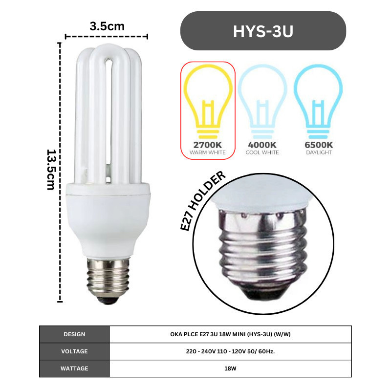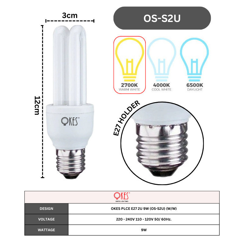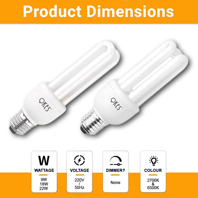 OKES 2U 3U Tube Bulb OKA Lighting Light Bulb 9w 18w 22w E27 PLC Energy Saving 2700K 6500K Lightbulb Series Lampu Mentol
