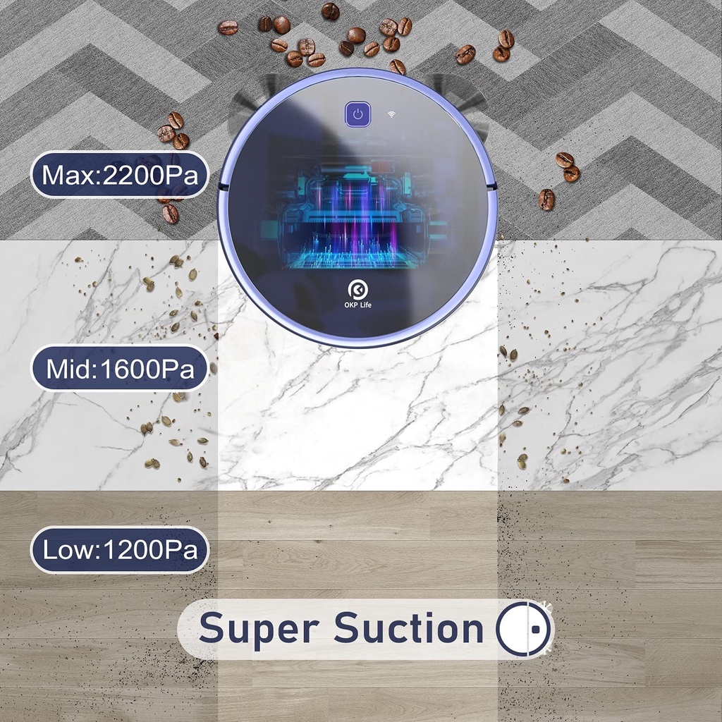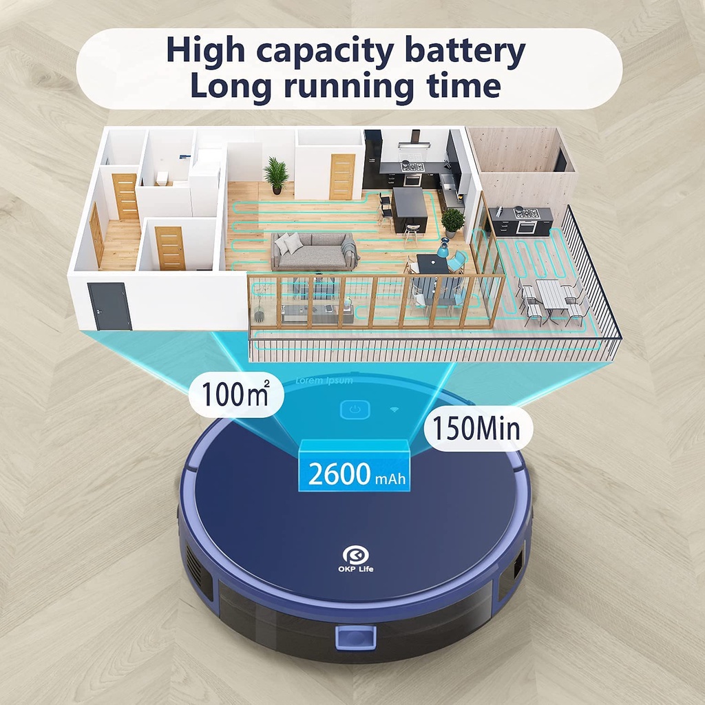 OKP K7 robot vacuum cleaner and wiping robot, suction power 2200 Pa, 120 min battery life, 300 ml water tank, 59 dB vol