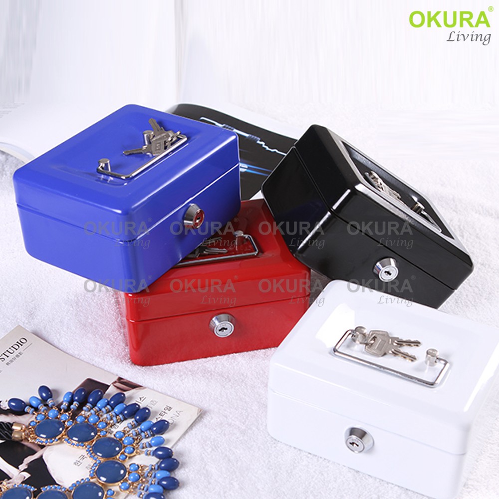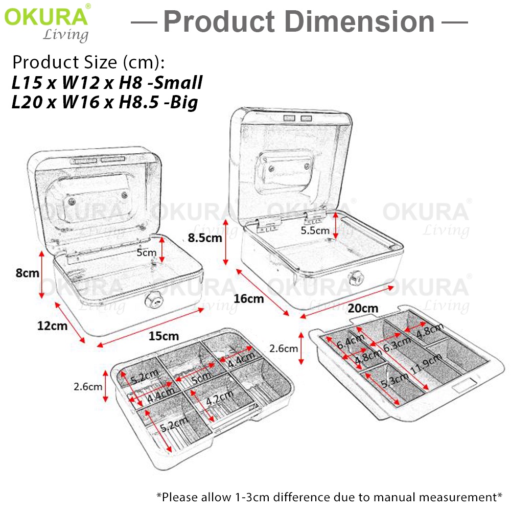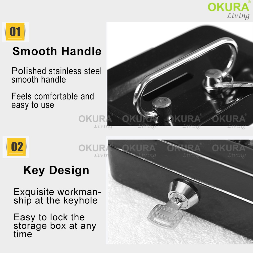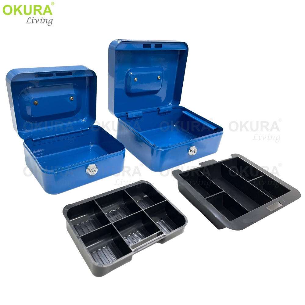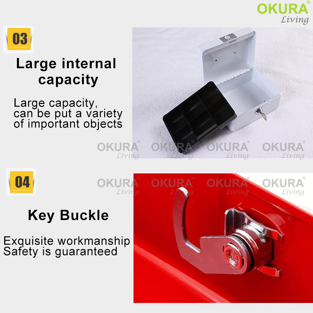 OKURA Metal Petty Cash Box Storage Money Coins Tray With Key Lock Lockable Kotak Wang Runcit Home Office Hotel Security