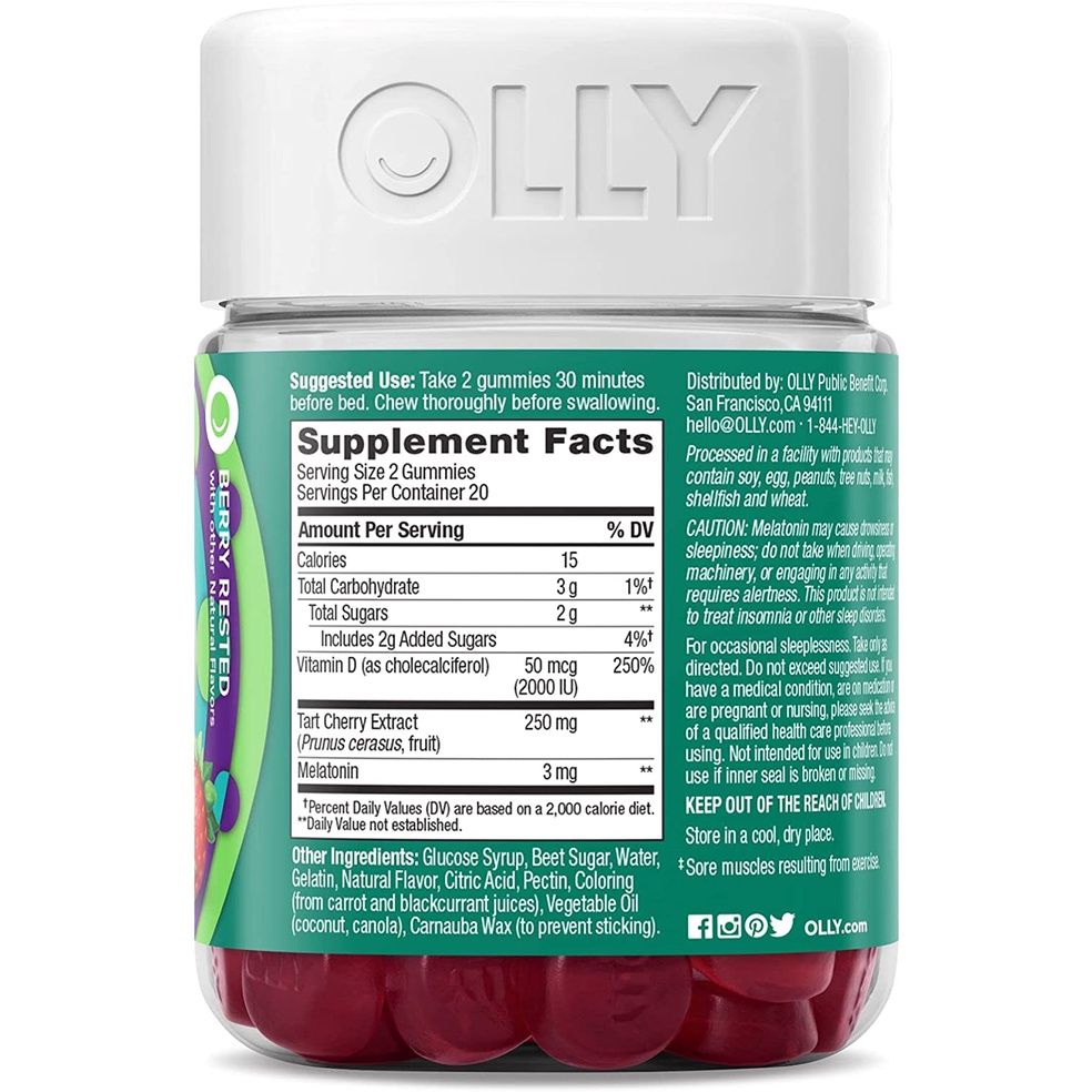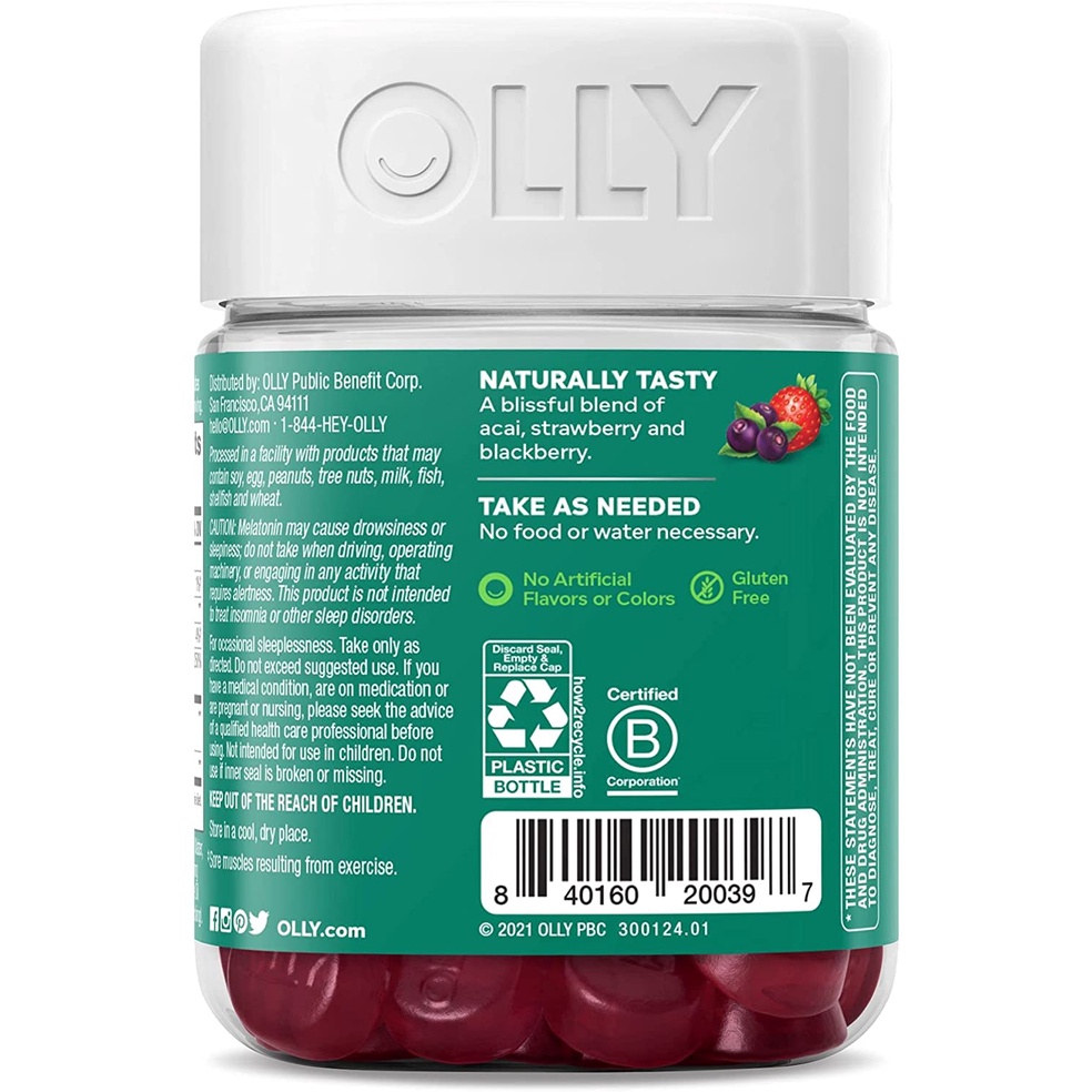 OLLY Muscle Recovery Sleep Gummies, 40 Gummies Sleep and Sore Muscle Support, 3mg Melatonin