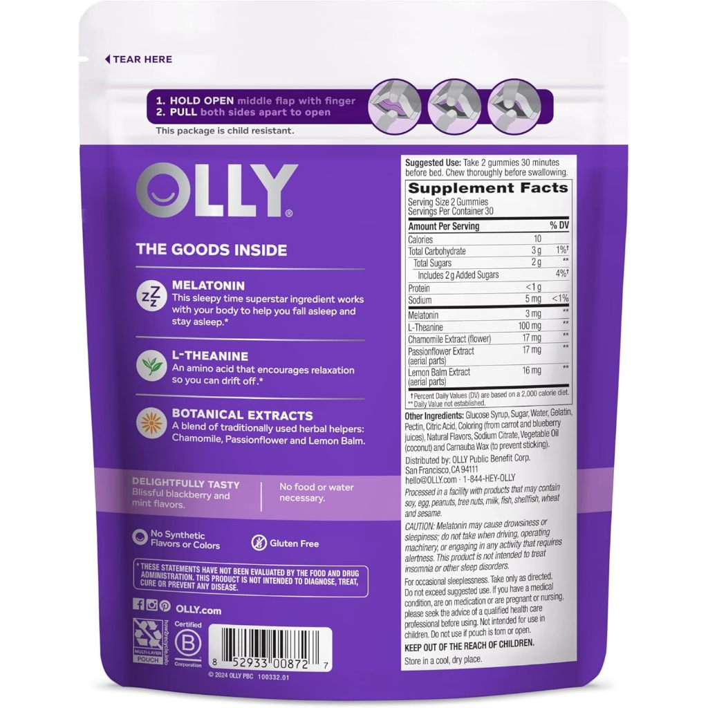 OLLY Sleep Gummy Supplements with Melatonin, For Healthy Sleep Cycle, Chewable Supplement, Refill Pouch (60 GUMMIES)