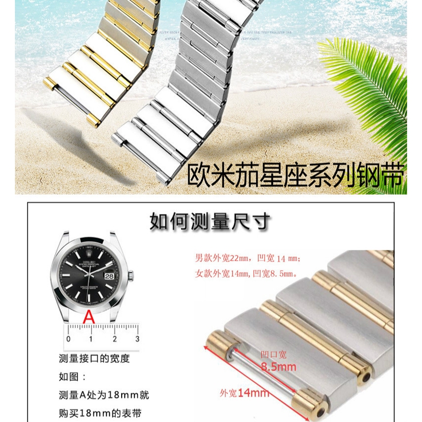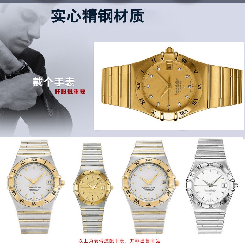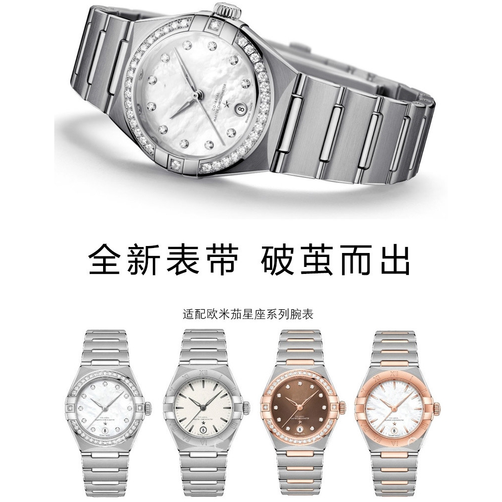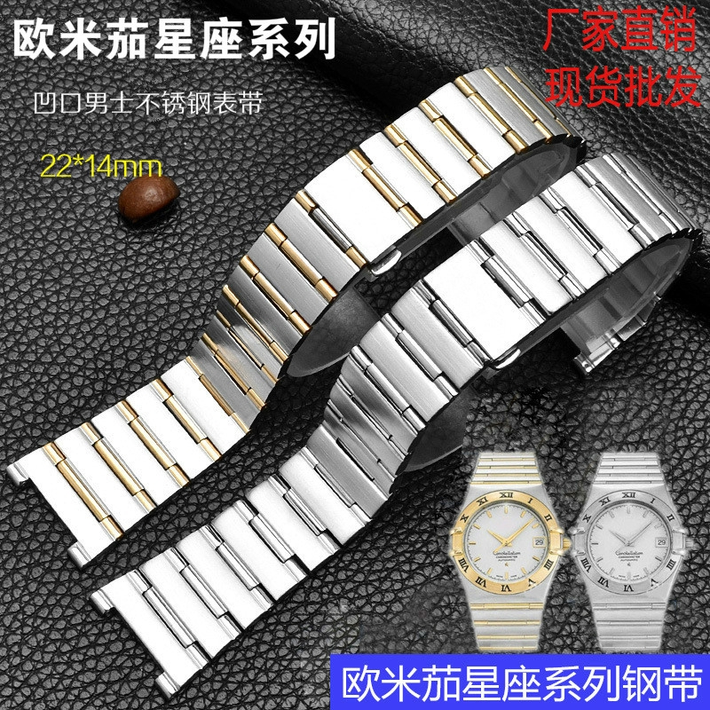 OMEGA Dedicated Solid Stainless Steel Strap Constellation Series Concave Joint Men's Watch Chain Double Press Folding Buckle Nano Plating 22 * 14mm