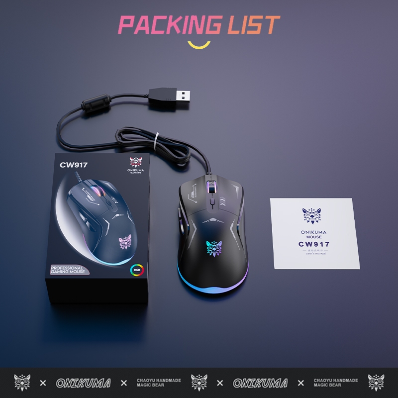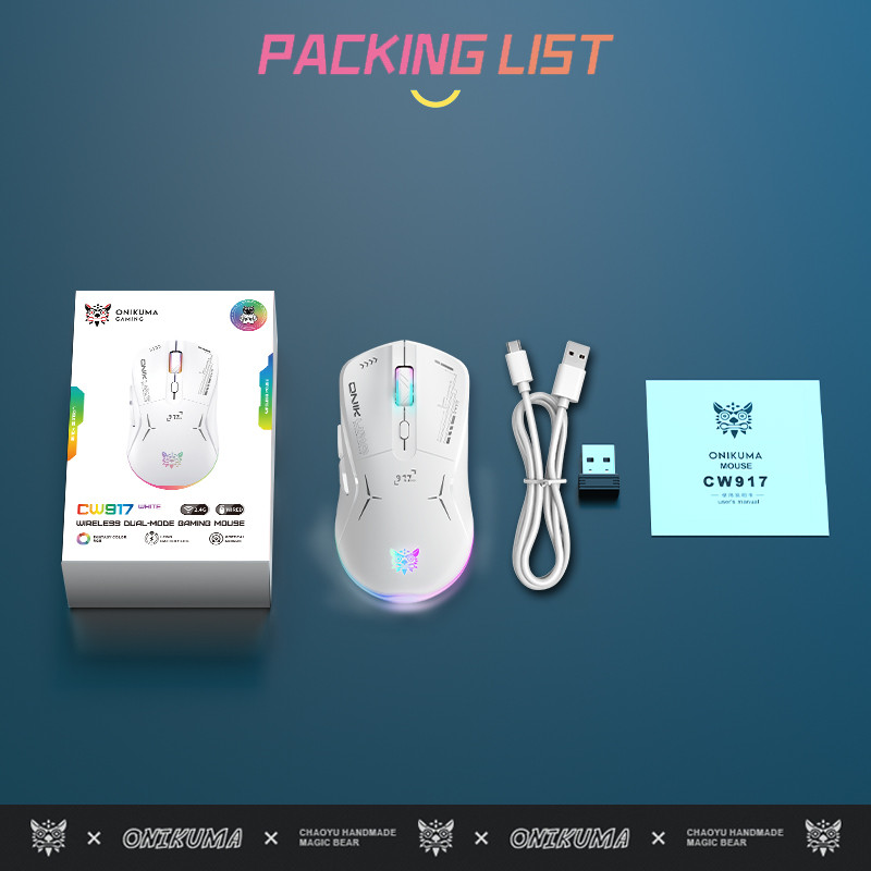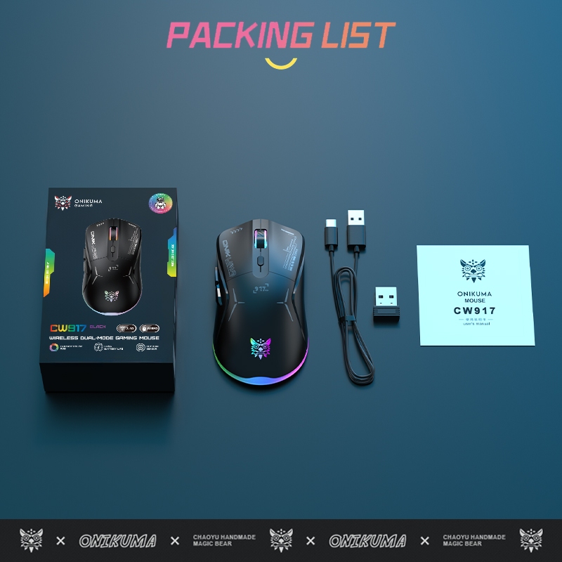 ONIKUMA CW917 Mouse Wireless 2.4G Dual Mode RGB Lights Programming Button Office Gaming Mouse