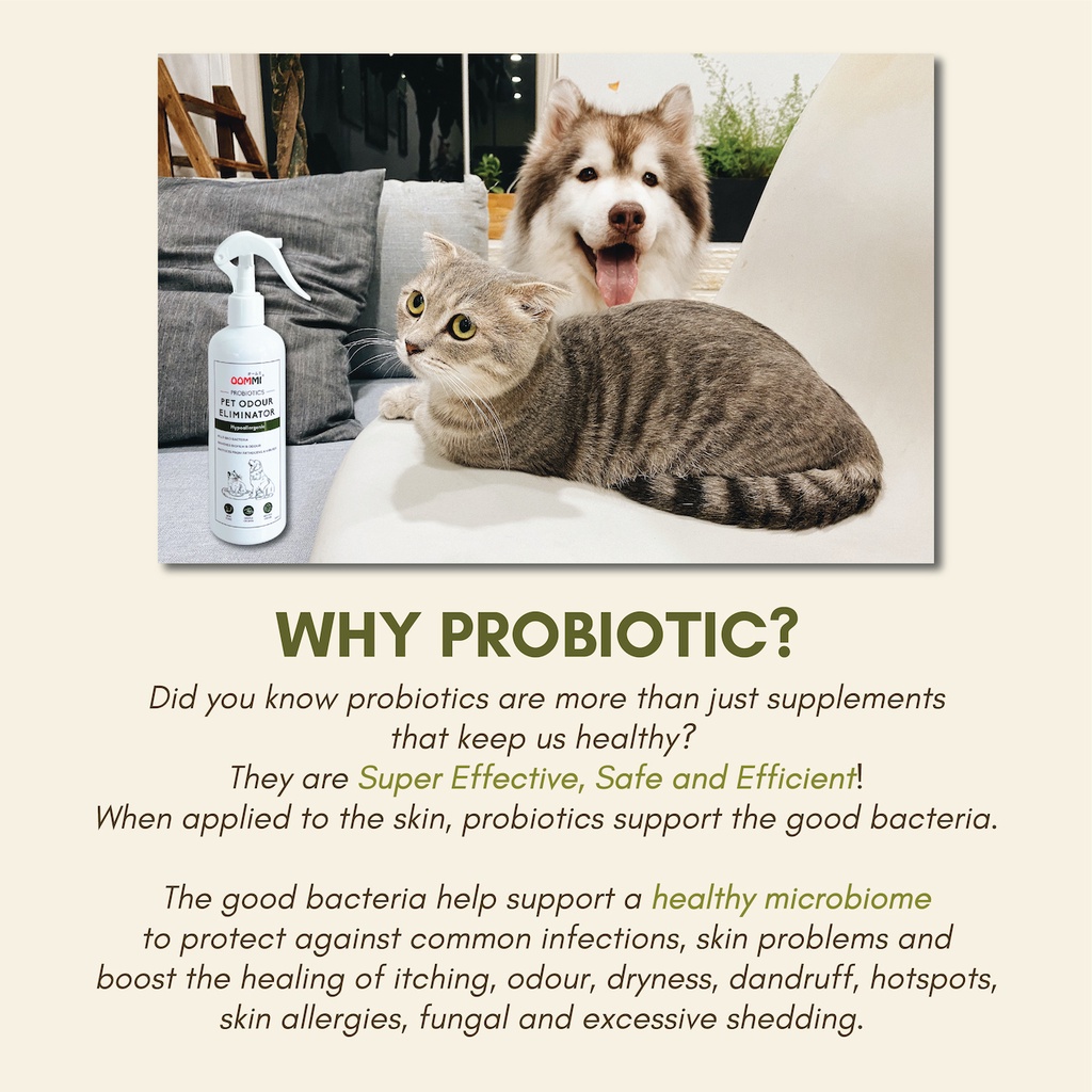 OOMMI Probiotics Pet Odour Eliminator | Itch relief daily dry shampoo & deodorant | Mist face, fur & each paw after walk