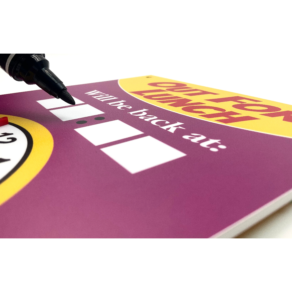 OPENING HOURS / OUT FOR LUNCH SIGNAGE ( 148mm x 210mm ) | A CLOCK & SPACE TO WRITE | DOUBLE SIDED DESIGN |