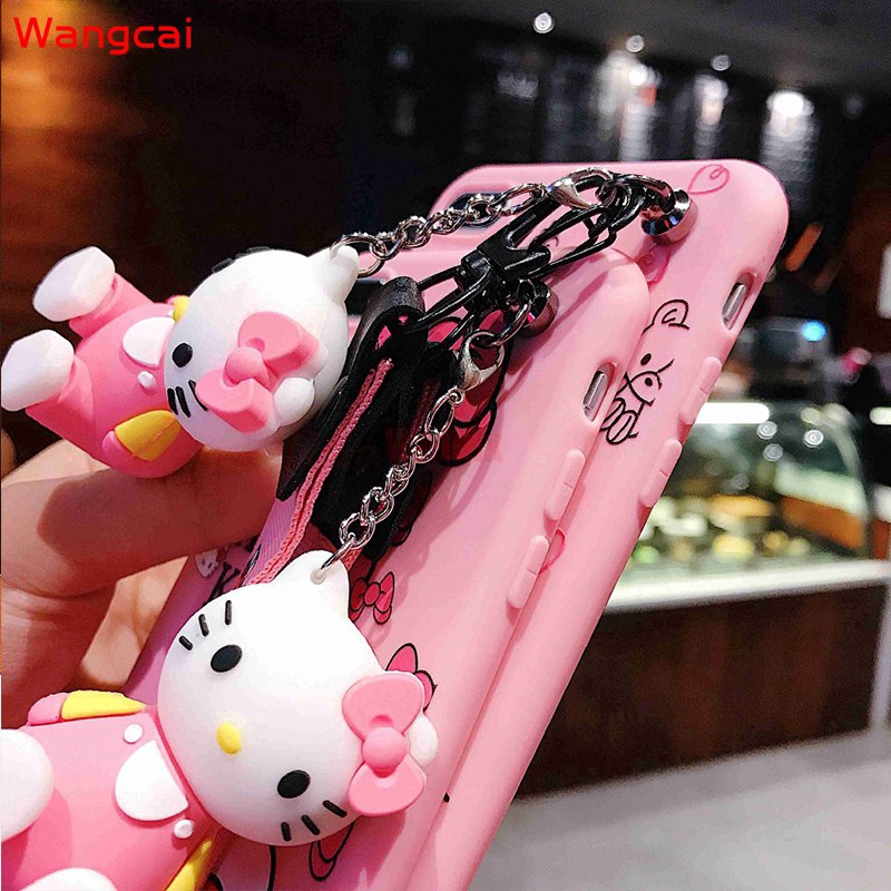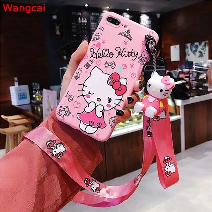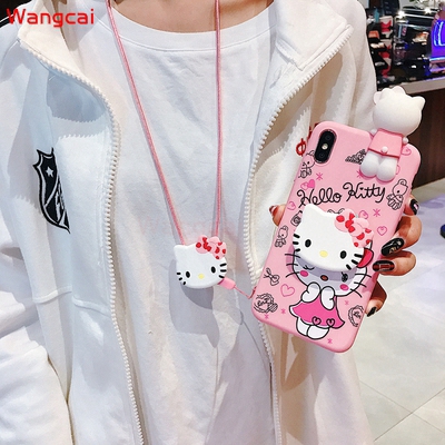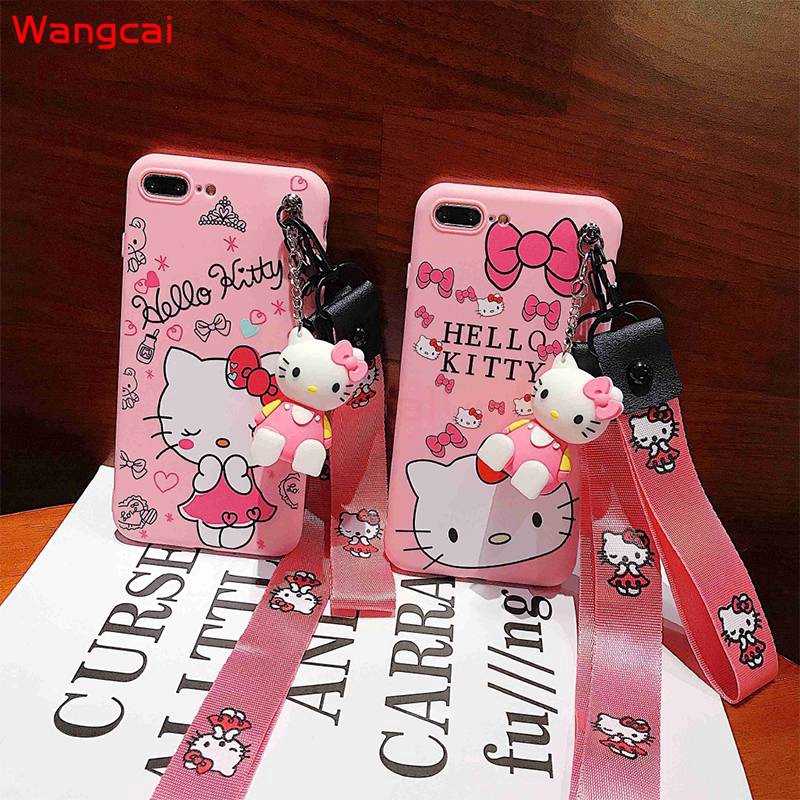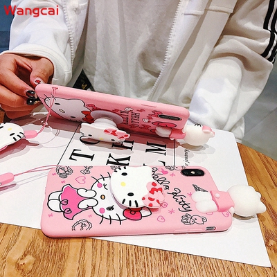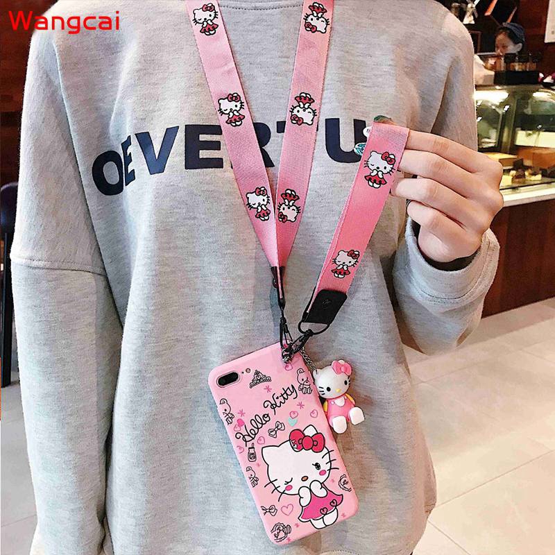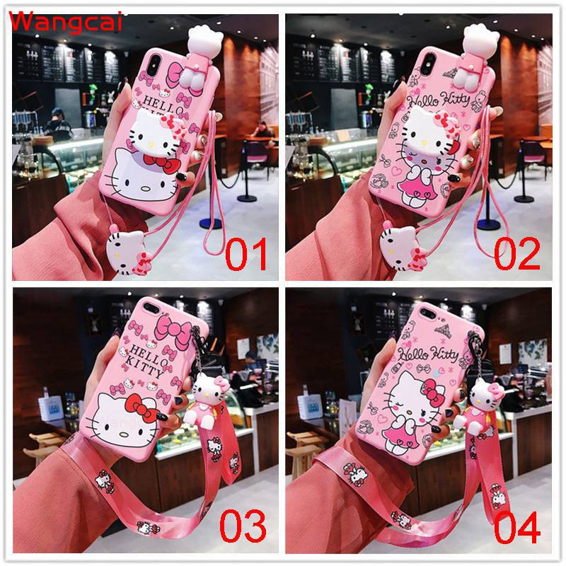 OPPO A7 A5S A5 A3S A83 A1 A77 2017 A73 A71 A57 A39 A37 Neo 9 F5 F3 F1S Case Hello Kitty Cartoon Cute Pink Lanyard Strap Holder Stand Soft TPU Case Cover