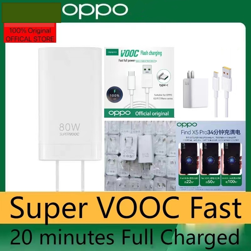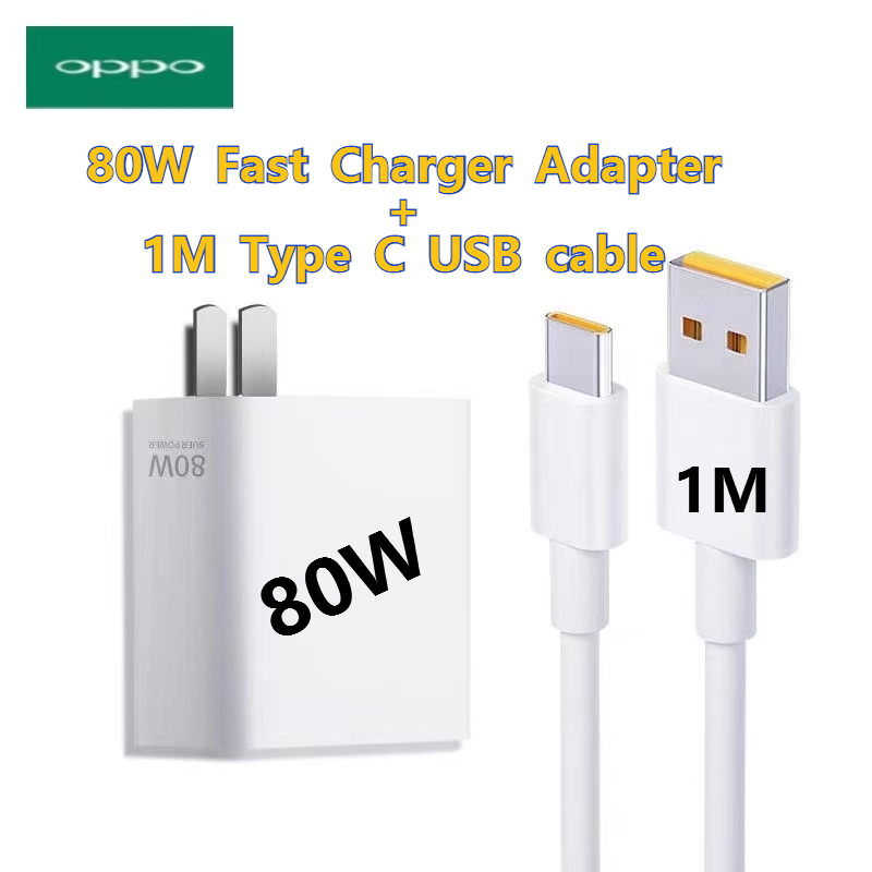 OPPO VOOC Super Fast Charger 80W Adapter and 8A USB Type C Cable For Realme Type C charger