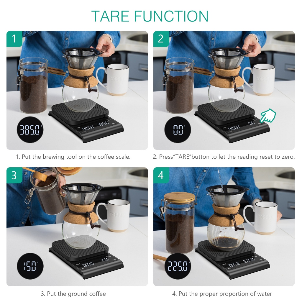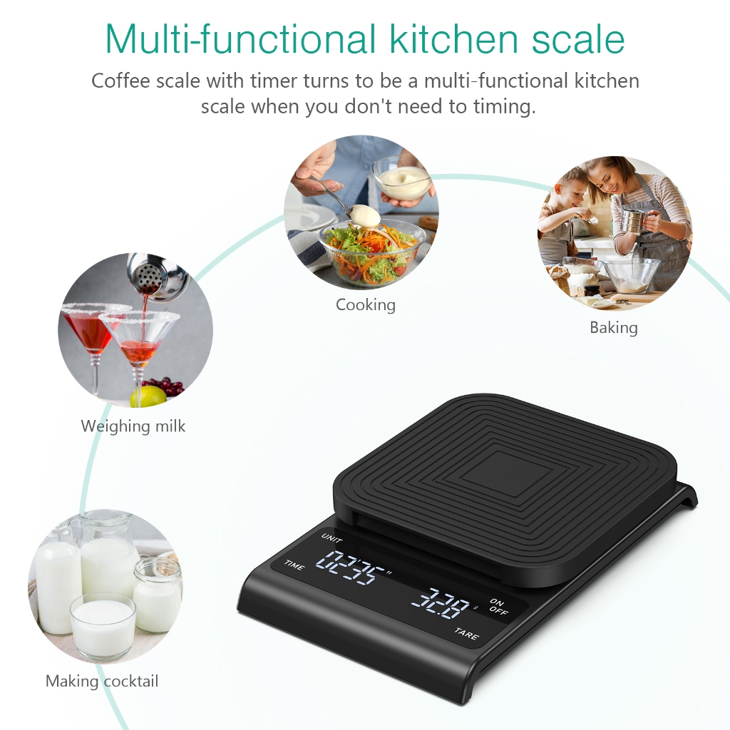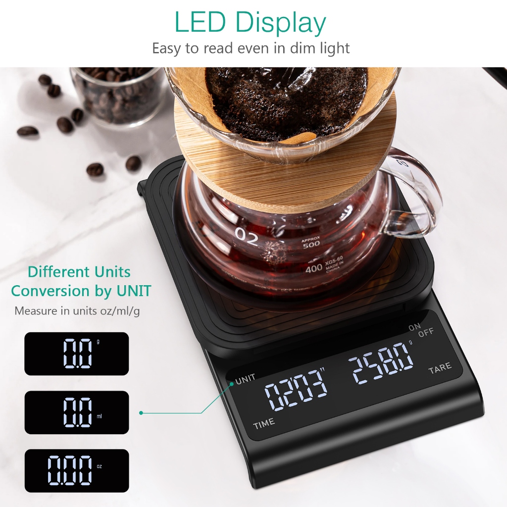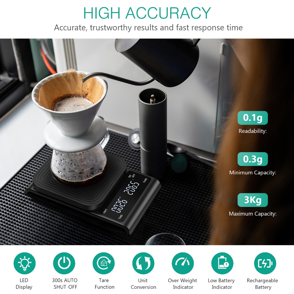 ORIA 3kg/0.1g Digital Coffee Scale Precision Espresso Scale with Timer for Food Coffee