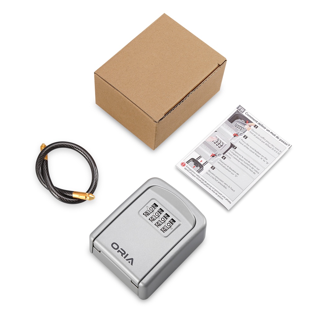 ORIA Key Lock Box 4 Digit Combination Wall Mounted Key Safe Box with Removable Chain(5 Keys Capacity)