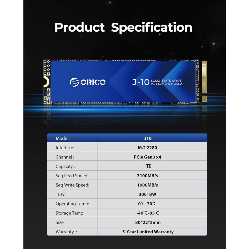 ORICO 256GB 512GB 1TB SSD M.2 2280 NVME PCIe 3.0 SSD 3500MB/s For Laptop Desktop PC(ORICO-J10)