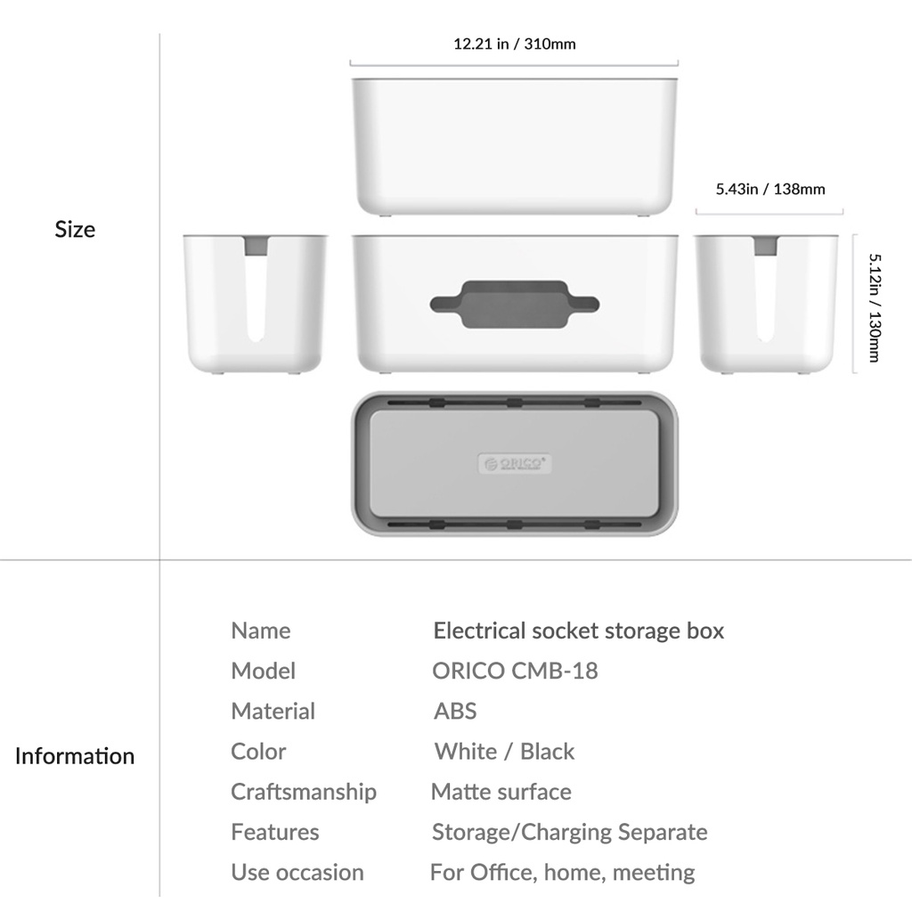 ORICO Storage Box Phone Holder Power Strip Box for Adapter Wire/Charger Line/USB Network HUB Cable Management Box