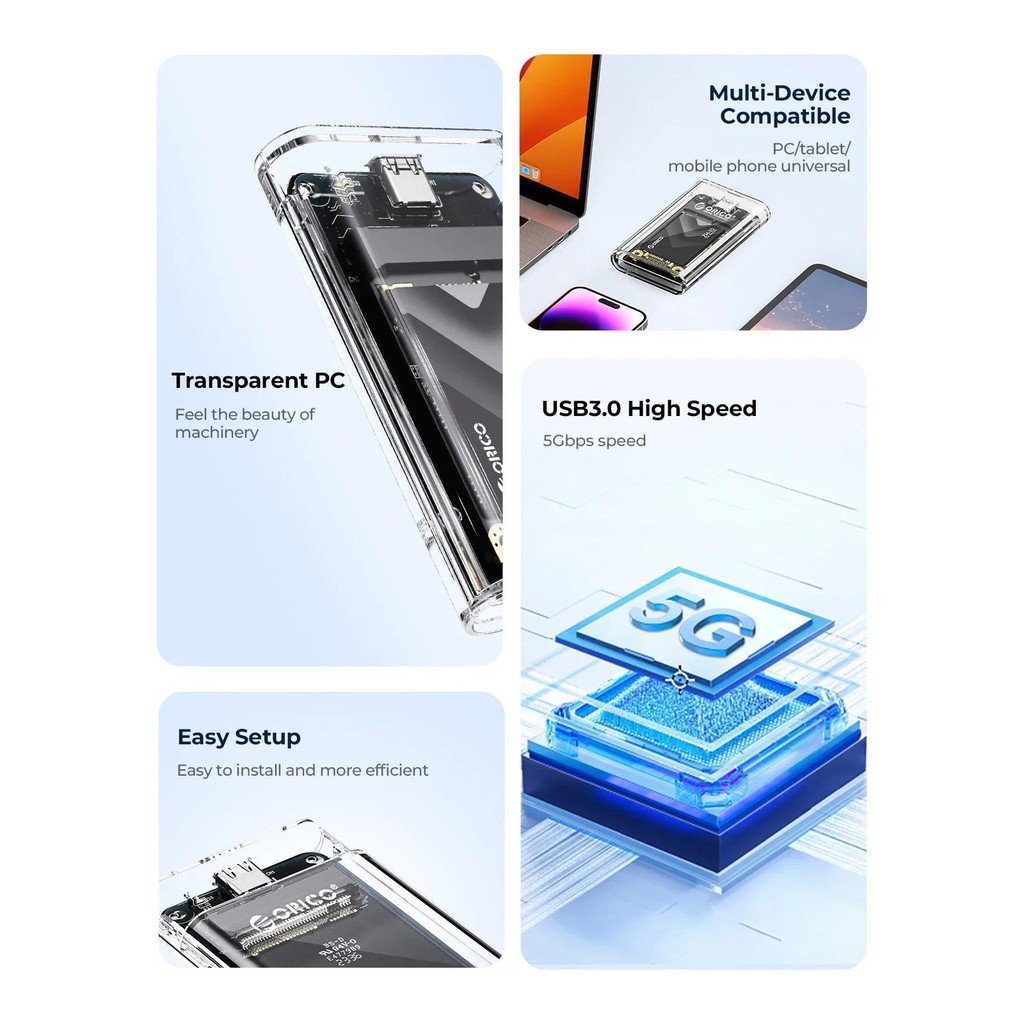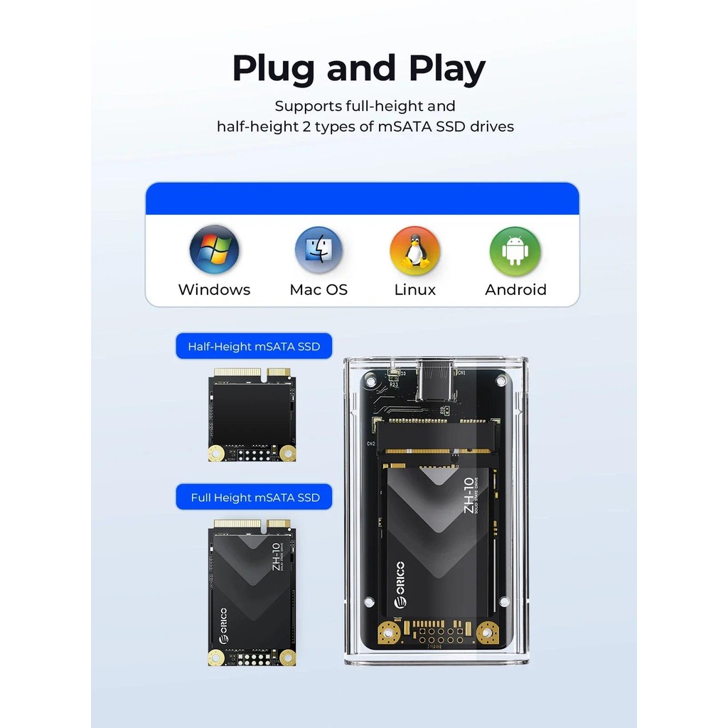 ORICO Transparent Mini mSATA SSD Case To Type-C SSD Enclosure Adapter External Adapter 5Gbps for mSATA NGFF SSD for PC Case