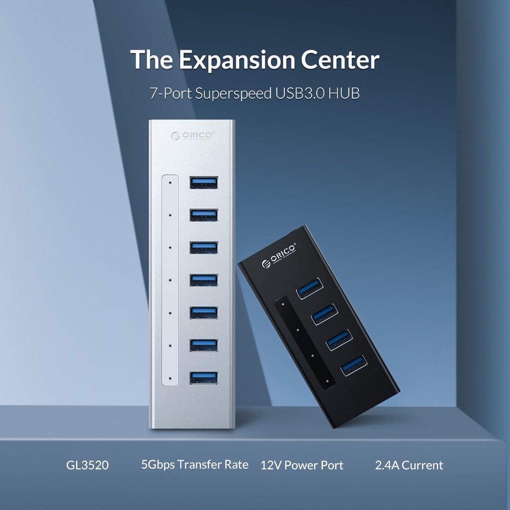 ORICO USB Hub Aluminum High Speed 4/7/10 Port USB 3.0 HUB with 12V Power Adapter Support BC1.2 Charging Splitter