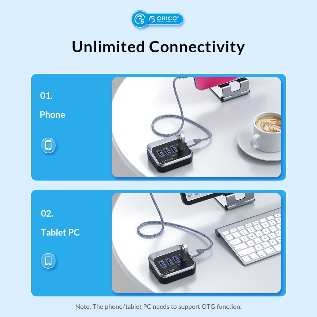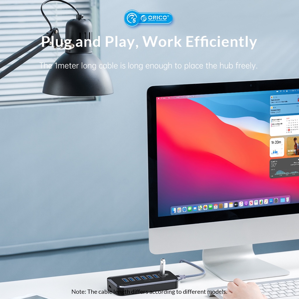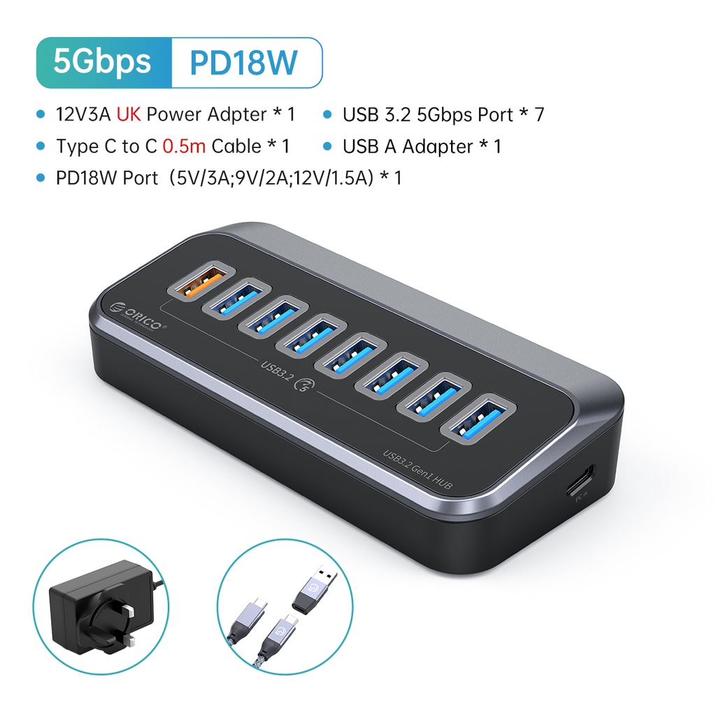 ORICO USB Hub USB 3.0 7 Ports High Speed 5Gbps Extension Hub Type C to USB 3.0 Hub Splitter With 12V 1.5A Power Adapter For Macbook Pro Air M1 PC Laptop Accessories(M3U3)