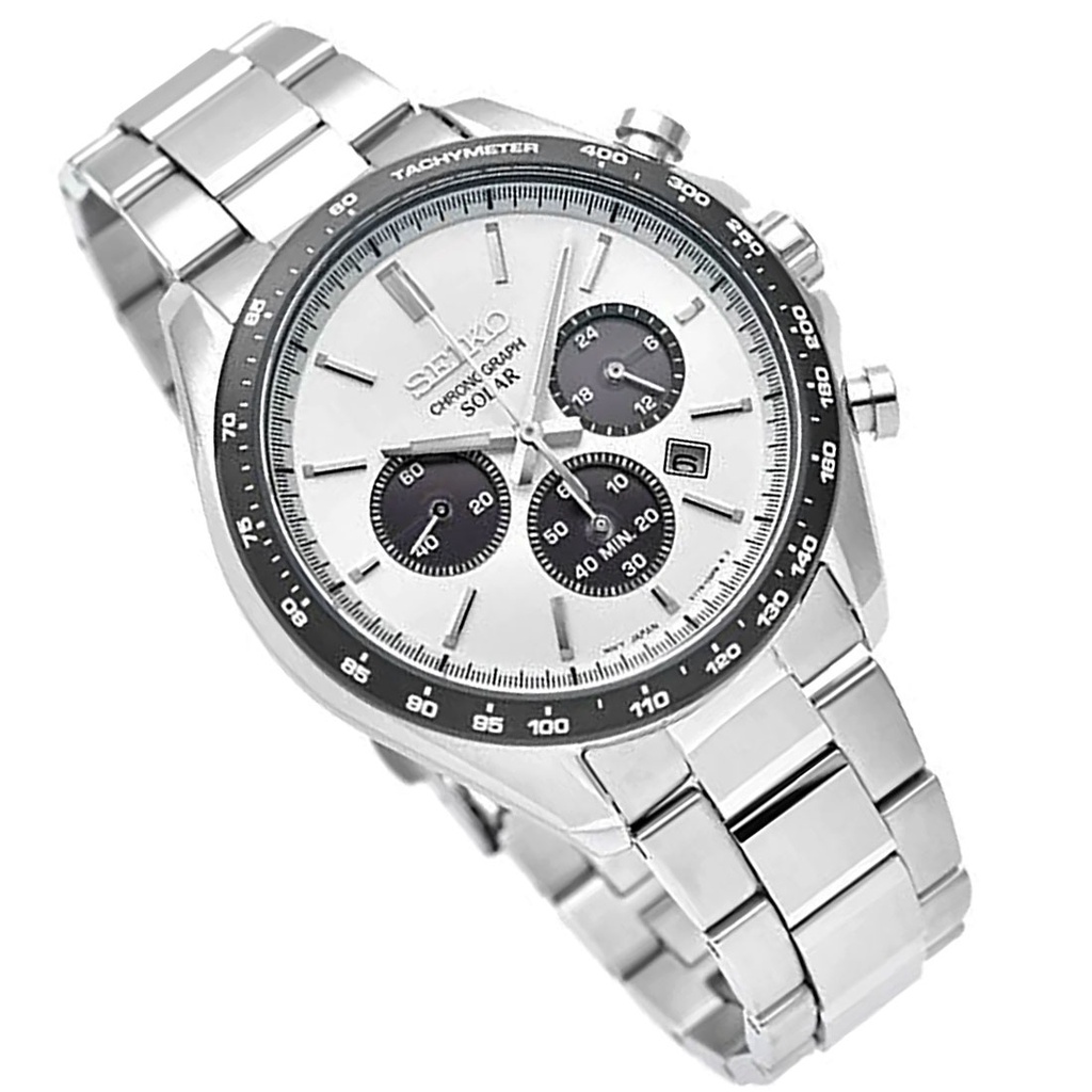 ORIGINAL Seiko JDM Panda Selection Solar Chronograph SBPY165 Stainless Steel Watch