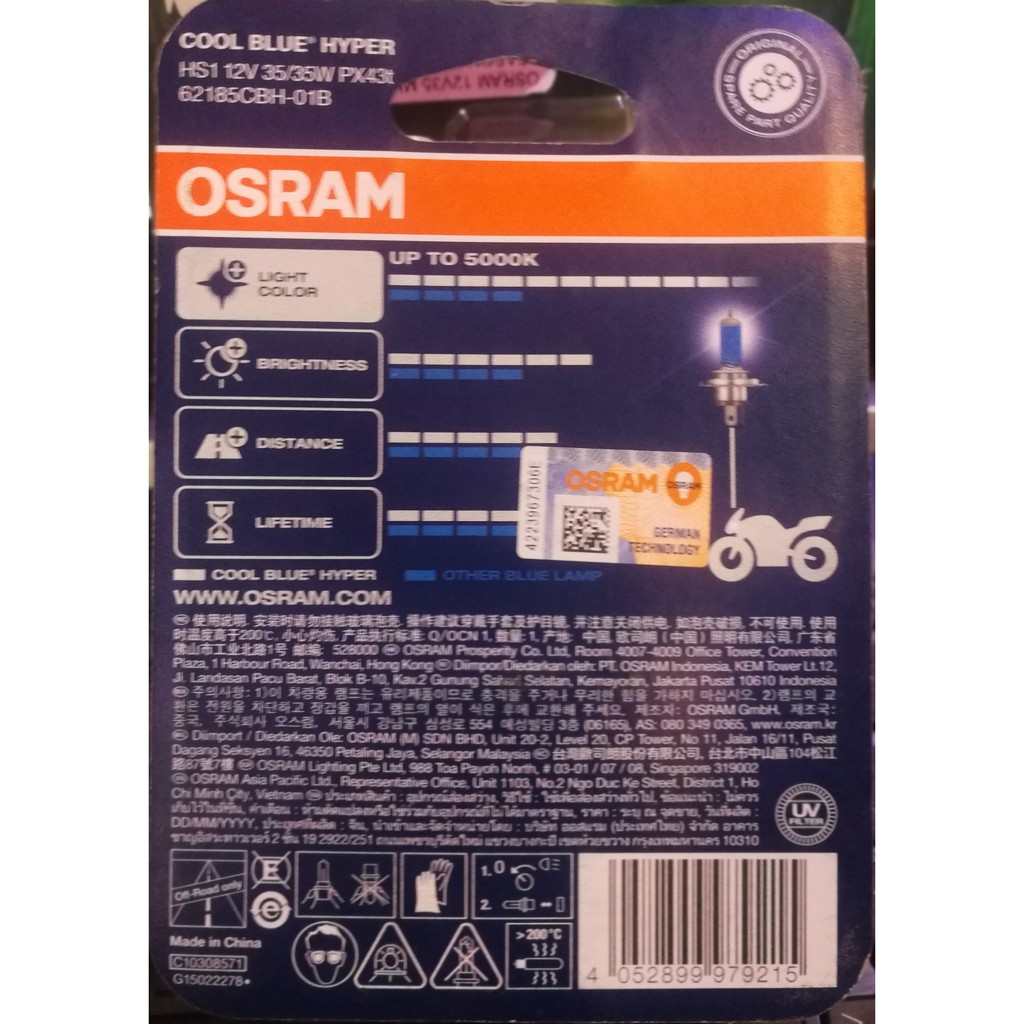 OSRAM 12V 35/35W HYPER WHITE HS1 MOTORCYCLE BULB(COOL BLUE)