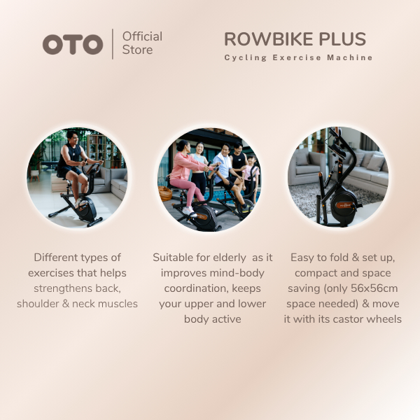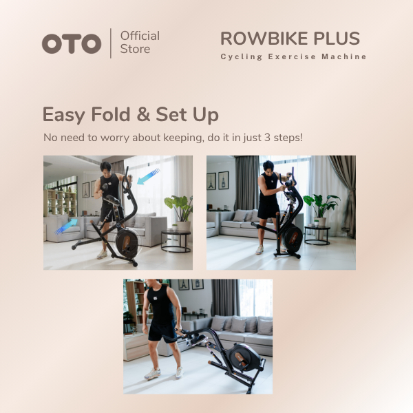 OTO Row Bike+ | Foldable Exercise Bike - Home Fitness Cardio Machine | RB-1000+