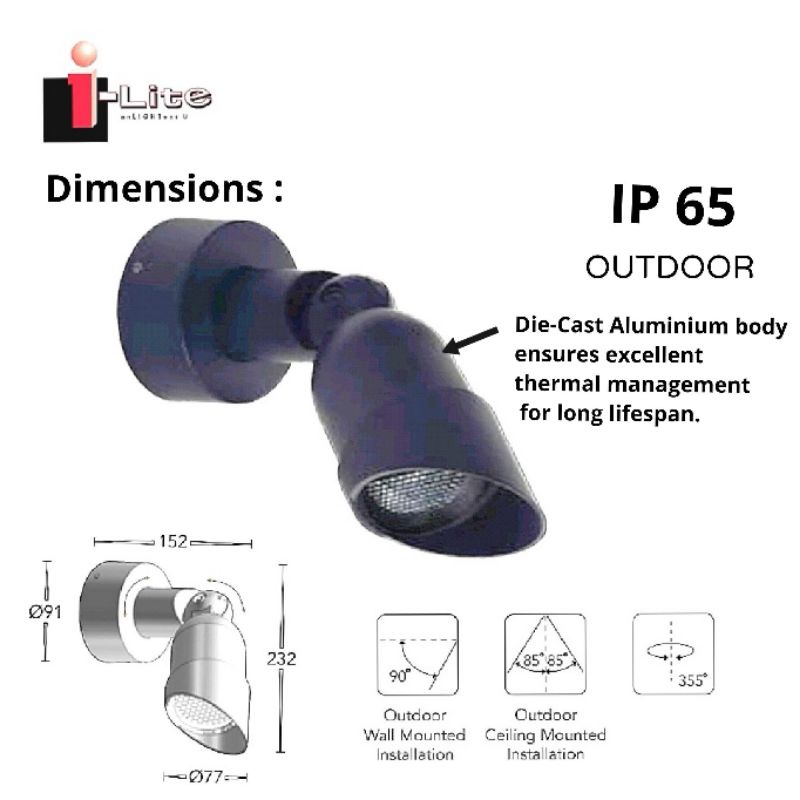 OUTDOOR LED WALL & CEILING MOUNTED ADJUSTABLE SPOTLIGHT