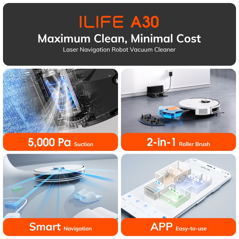 ILIFE A30 LDS Laser Navigation Smart Robot Vacuum Cleaner Mopping Robot 5000Pa Suction 3200mAh 180Min