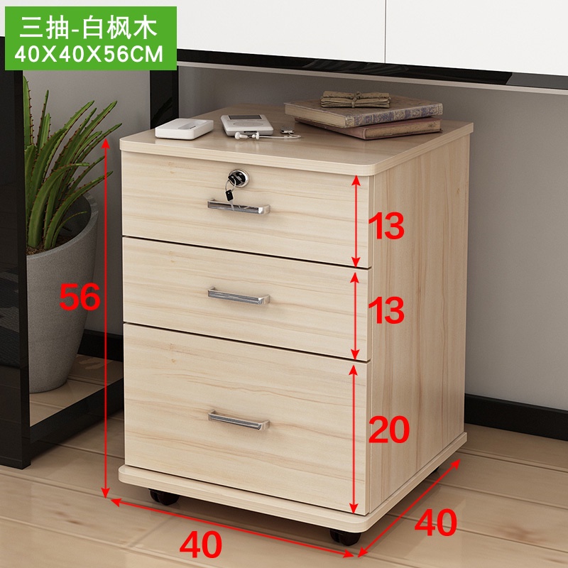 Office Filing Cabinet, Wooden Information Cabinet, Mobile Low Cabinet with Lock, A4 Drawer Cabinet, Storage Cabinet, Movable Small Cabinet