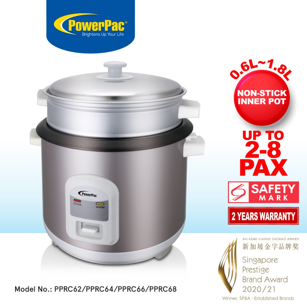 PowerPac Rice Cooker with Steamer 0.6L/1.0L/1.5L/1.8L(PPRC62/PPRC64/PPRC66/PPRC68)