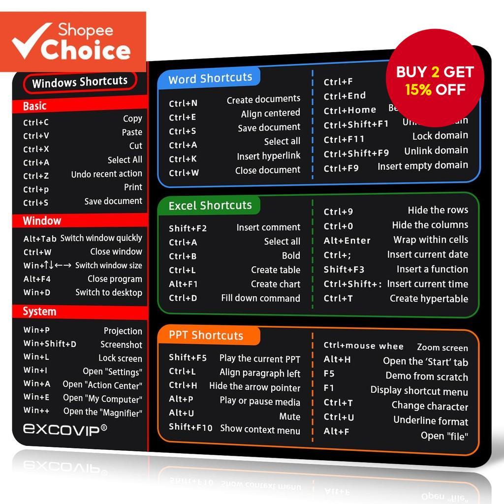 Office Shortcut Key Mouse Pad Soft Lock Edge Non Slip Efficient for Office Laptop Washable