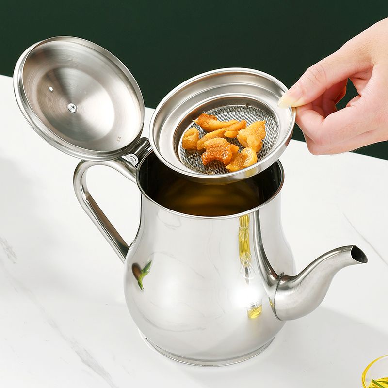 Oil Dispenser Food Grade 304 Stainless Steel Oil Jug Condiment Bottle Kitchen Oil Filter Pot Oil Pot with Oil Residue Strainer