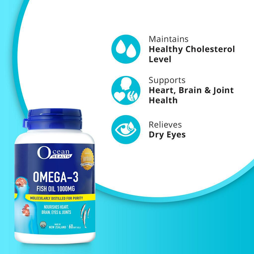 Omega-3 Fish Oil 1000mg (60s)- Ocean Health (For Heart, Brain, Eyes & Joints| Halal)