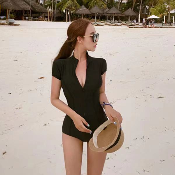 One-piece swimsuit female small chest gathered conservative swimming suit women slim thin swimwear lady sports short-sleeved bikini beachwear vacation bikini swimming wear