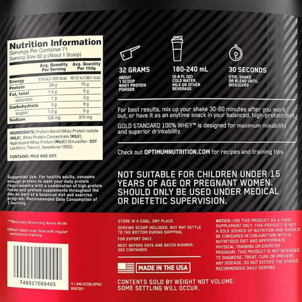 Optimum Nutrition Gold Standard 100% Whey Protein Powder 2lbs / 5lbs / 10lbs / Sachets