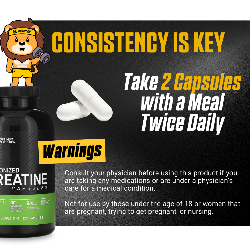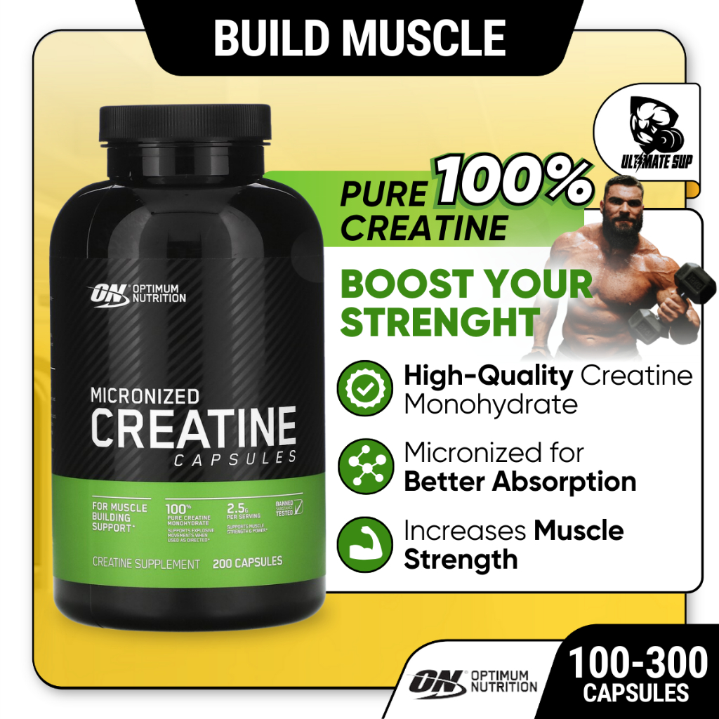 Optimum Nutrition Micronized Creatine Monohydrate Capsules 2.5 g, 100-300 Capsules