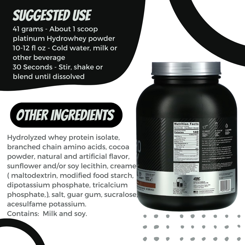 Optimum Nutrition, Platinum Hydro Whey, Protein, 1.8 lb (820g) / 3.5 lbs (1.6kg) / 3.61 lbs (1.64kg)
