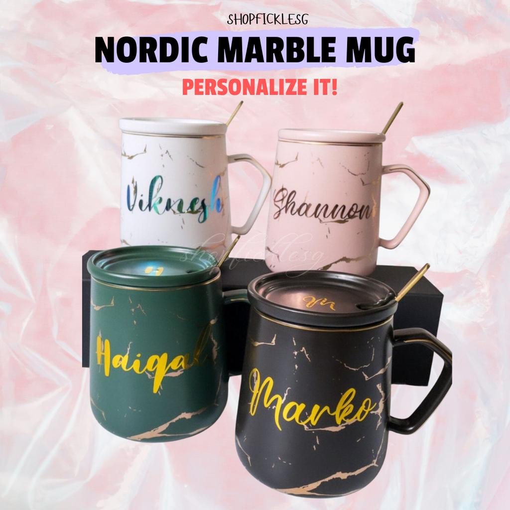 *SG INSTOCK* CUSTOMISED Nordic Marble Print Cup Coffee Mug W Lid Farewell Graduation Birthday Gift Merry Christmas Gift