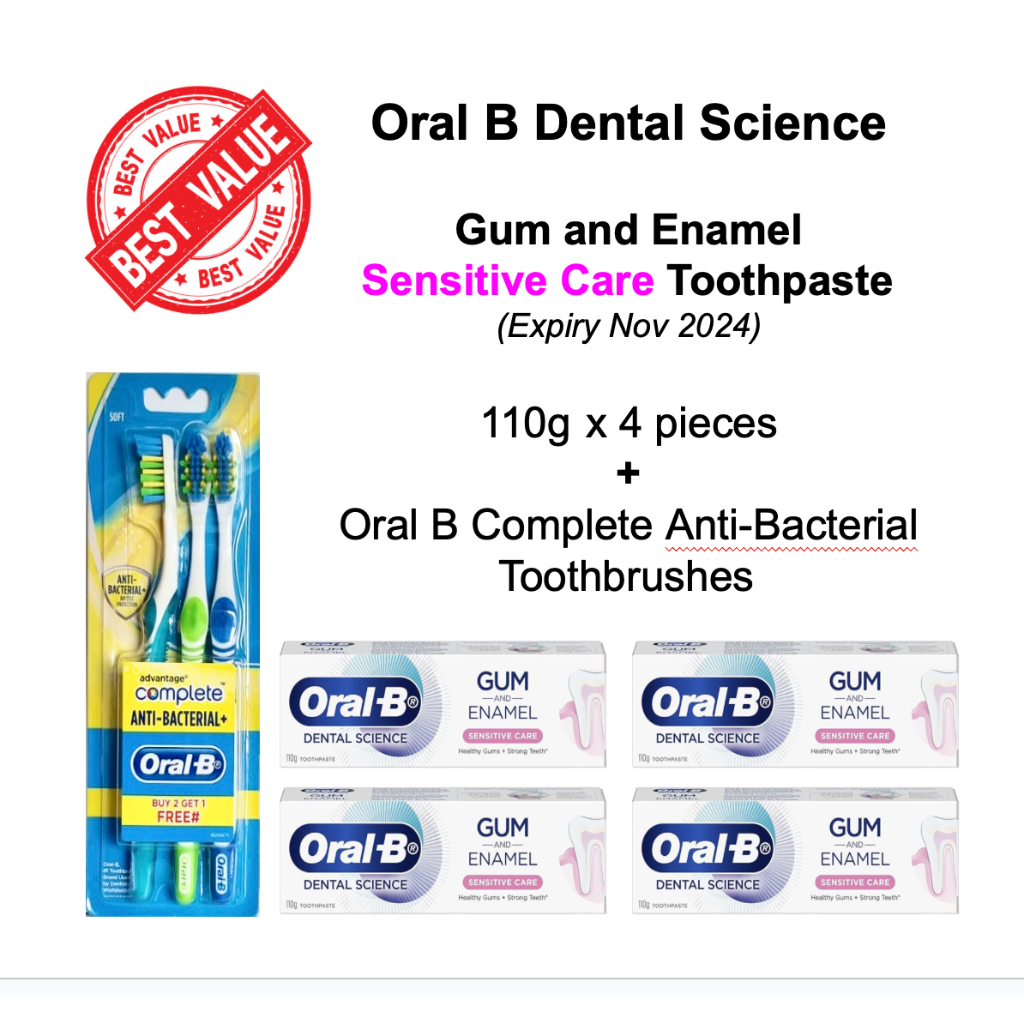Oral-B Dental Science Toothpaste / Enamel Densify 95g / Gum and Enamel Sensitive Care 110g / Bundle Pack + toothbrushes