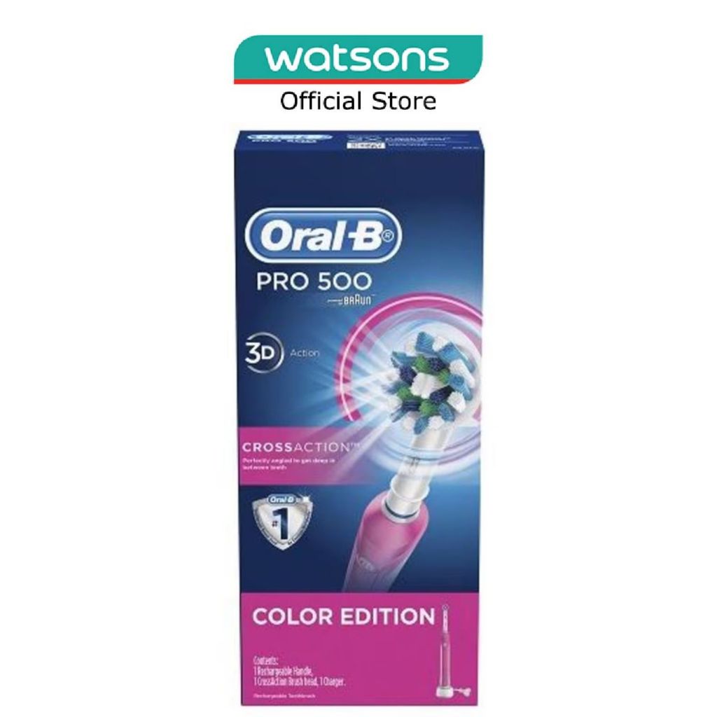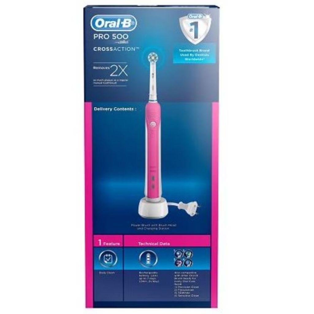 ORAL-B Pro 500 Pink CrossAction Electric Toothbrush Powered by Braun 1s
