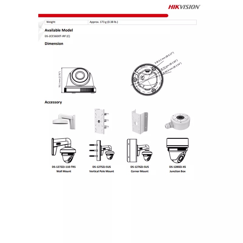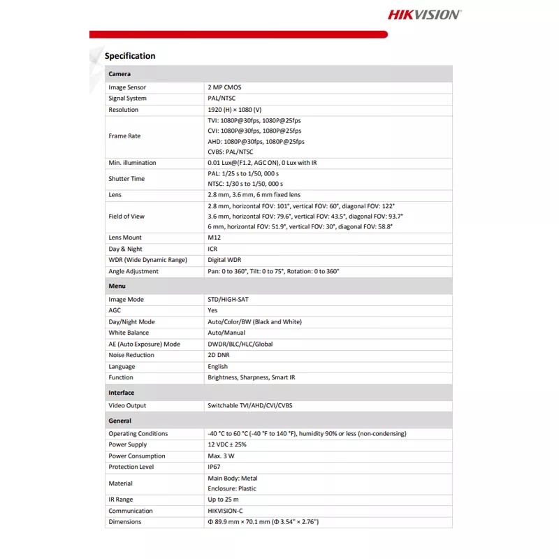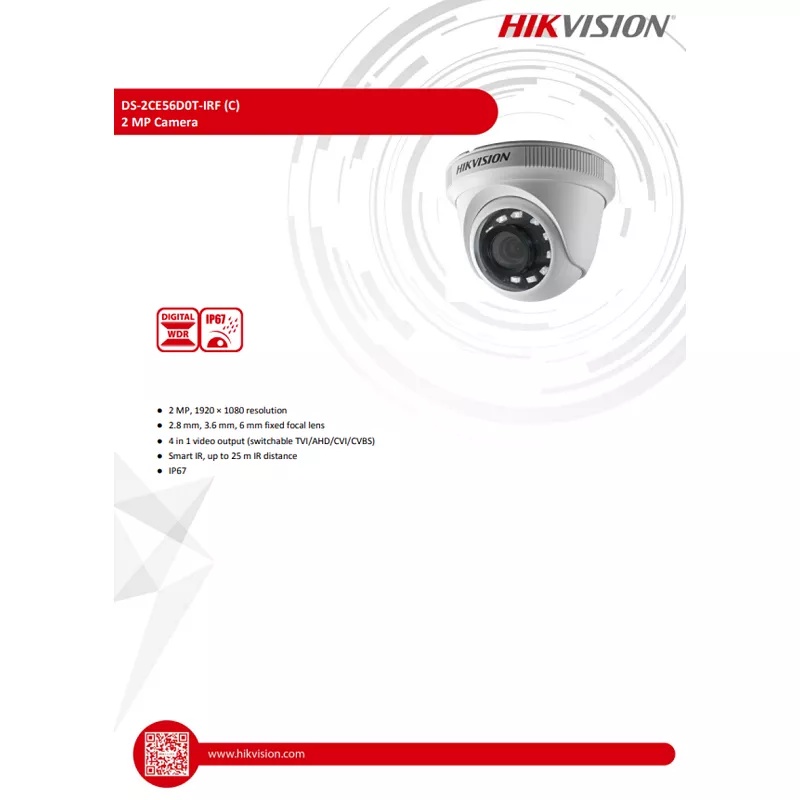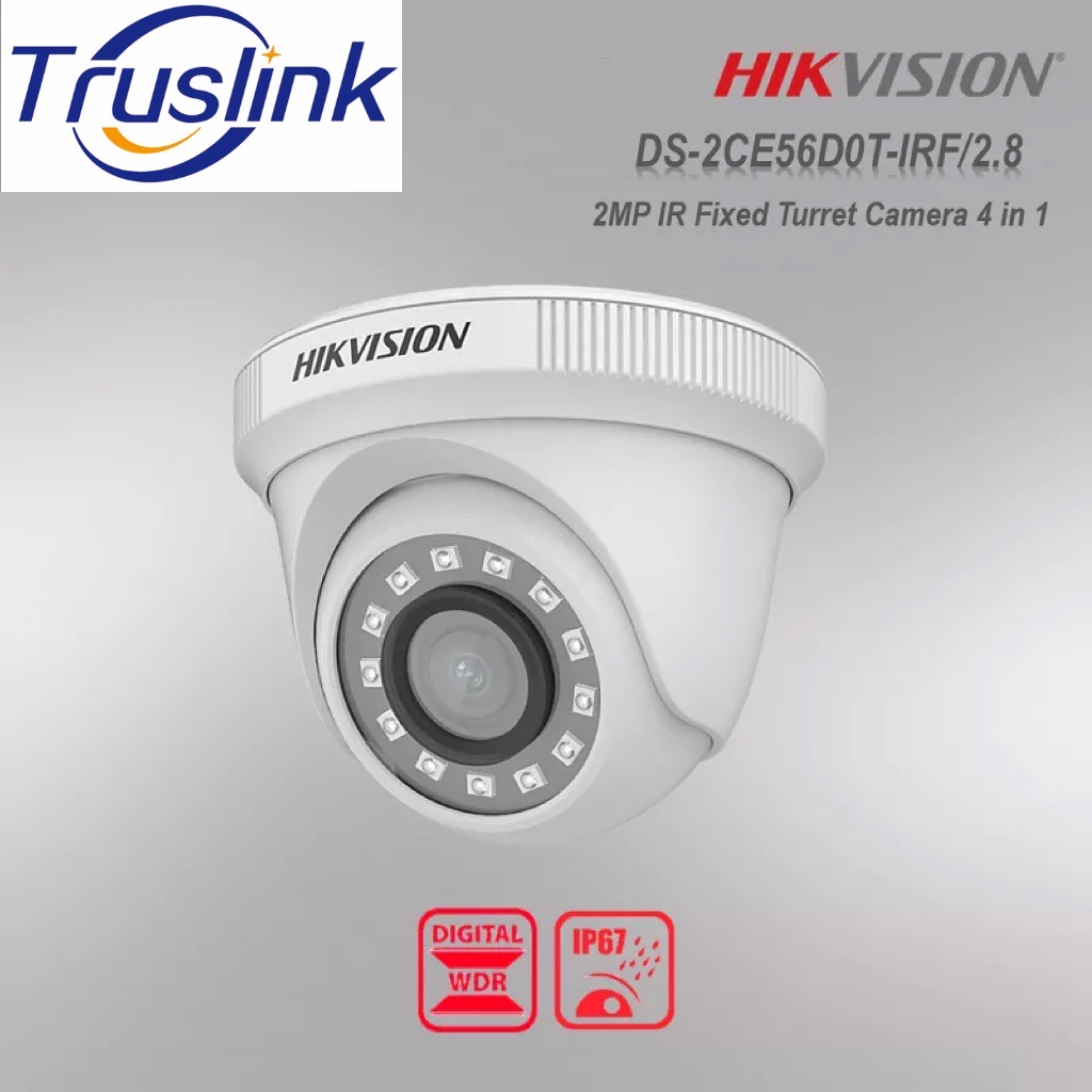 Original Hikvision 2MP Full-HD 1080P Fixed Turret/Dome Camera 2.8mm Wide-Angle Lens Smart IR IP66 Weatherproof 4 in 1 (T