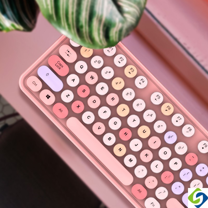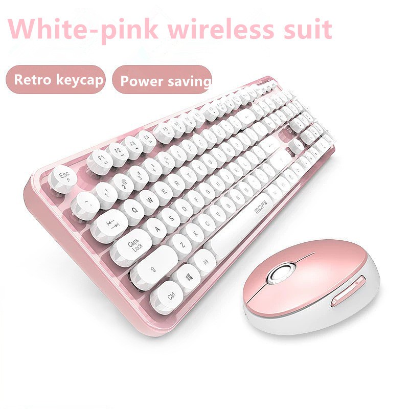 Original Wireless keyboard mouse color lipstick girl punk keyboard office suit Macaron pink lipstick mixed color for home game office Retro Punk Round Key Keyboard for Online Class