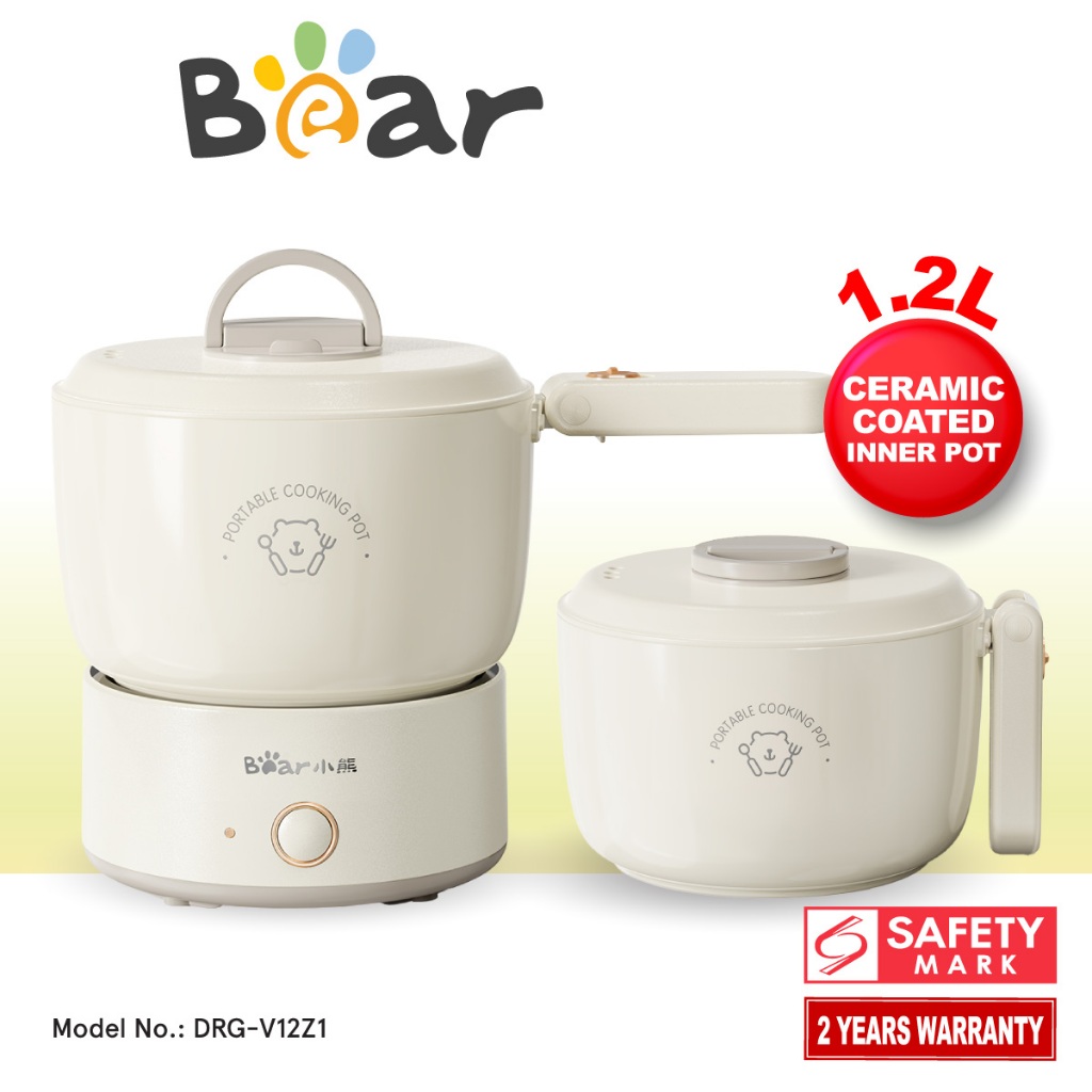 Bear 1.2 Travel Cooker, Travel Pot, Travel jug, Multi Cooker, Mini Steamboat with Ceramic coated inner pot (DRG-V12Z1)