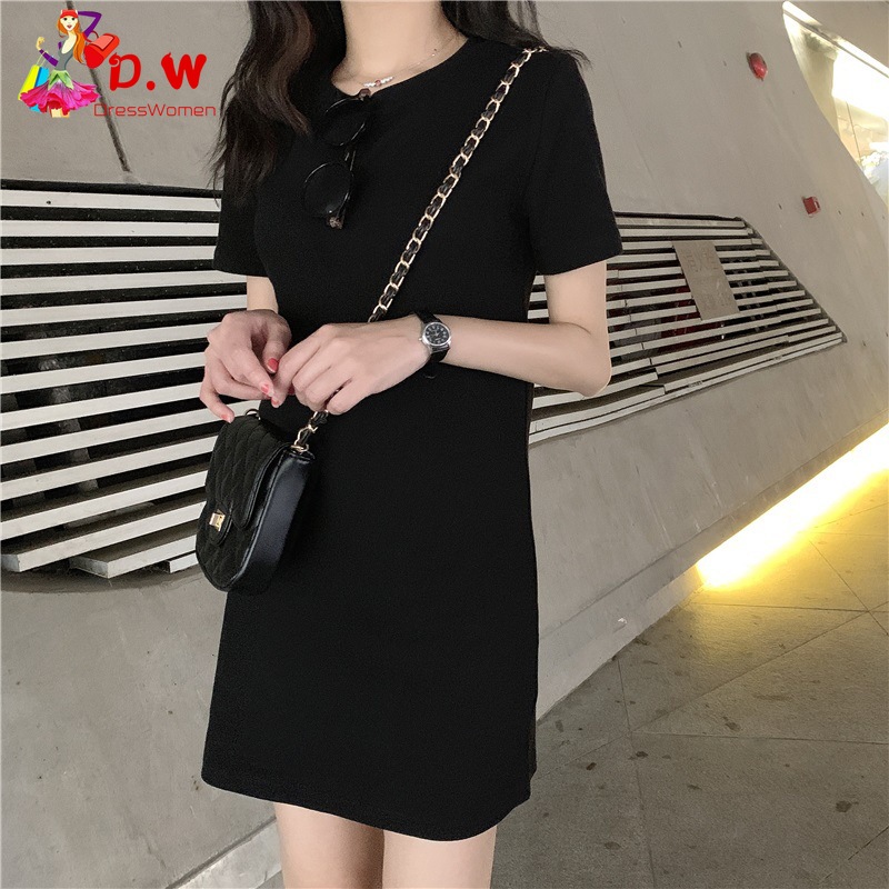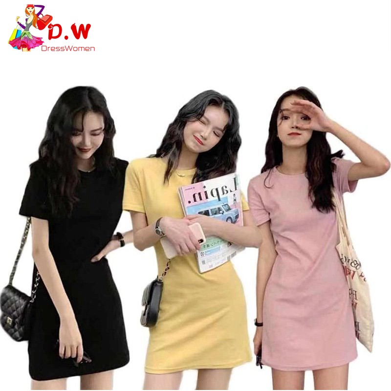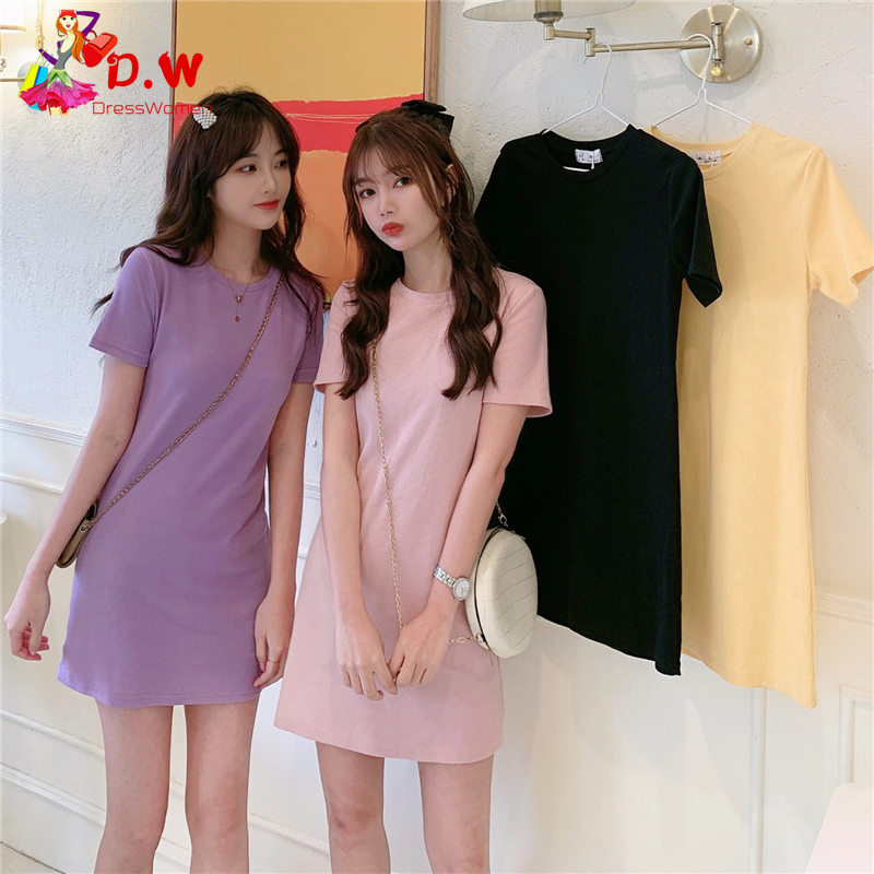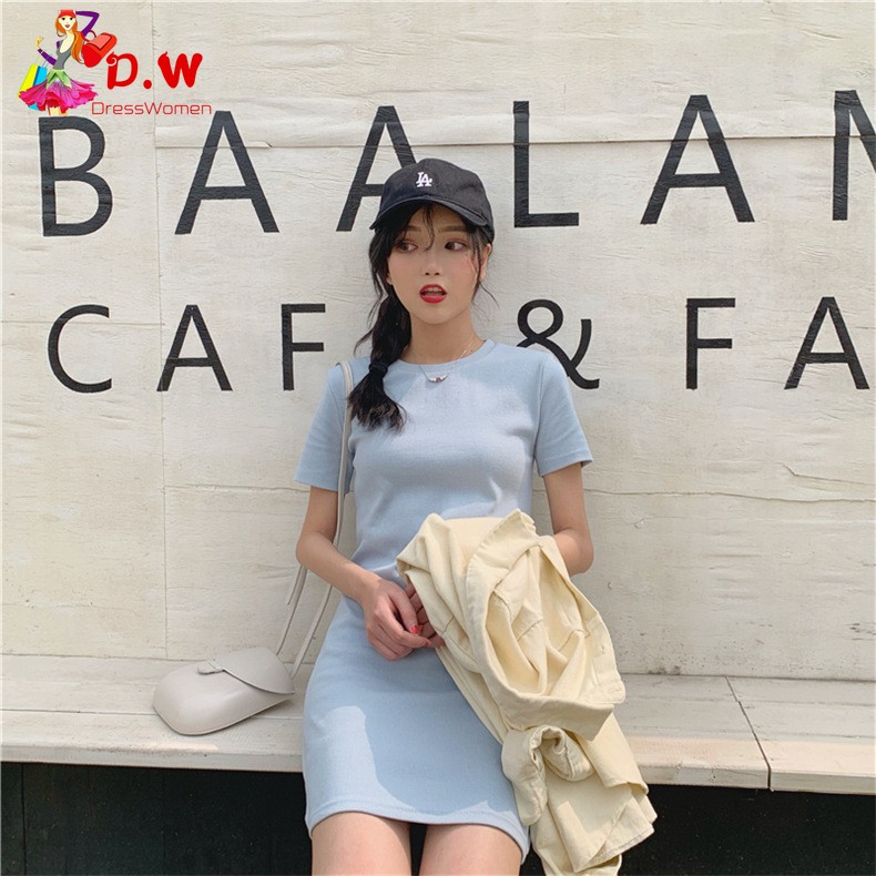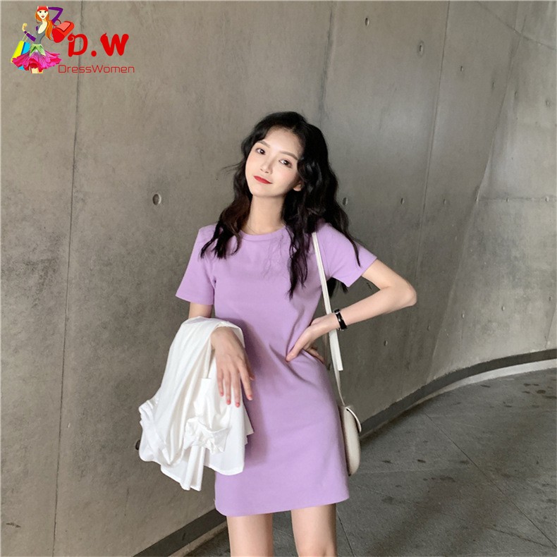 BF Mid-Long Short Sleeve Dress Woman Short Sleeve Candy Color Dress