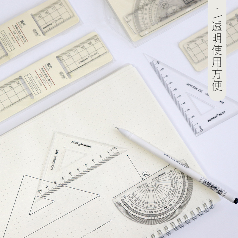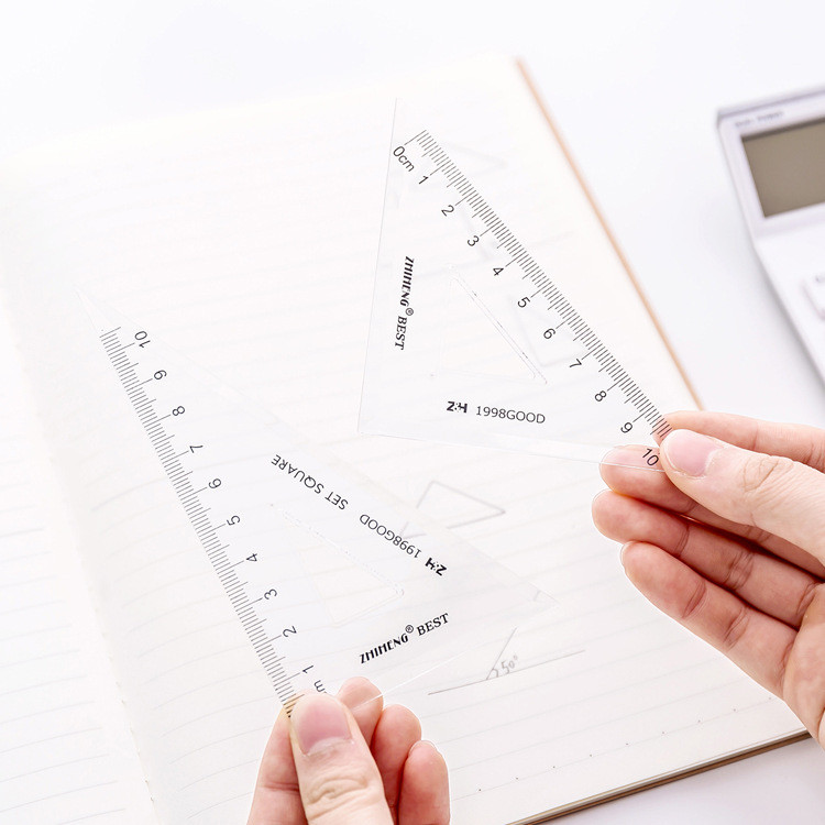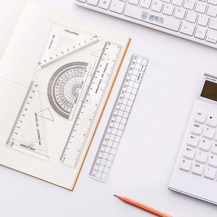 Ossayi 4 Pack Transparent Triangle Ruler,Straight Ruler,Grid Ruler,Angle Measuring Tools Student Stationery Set